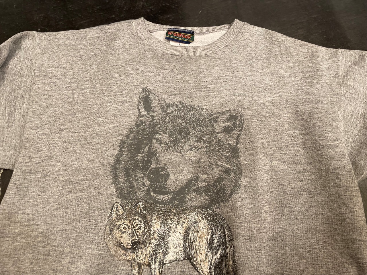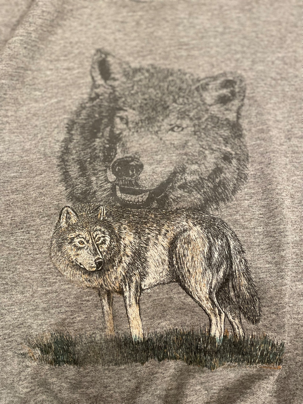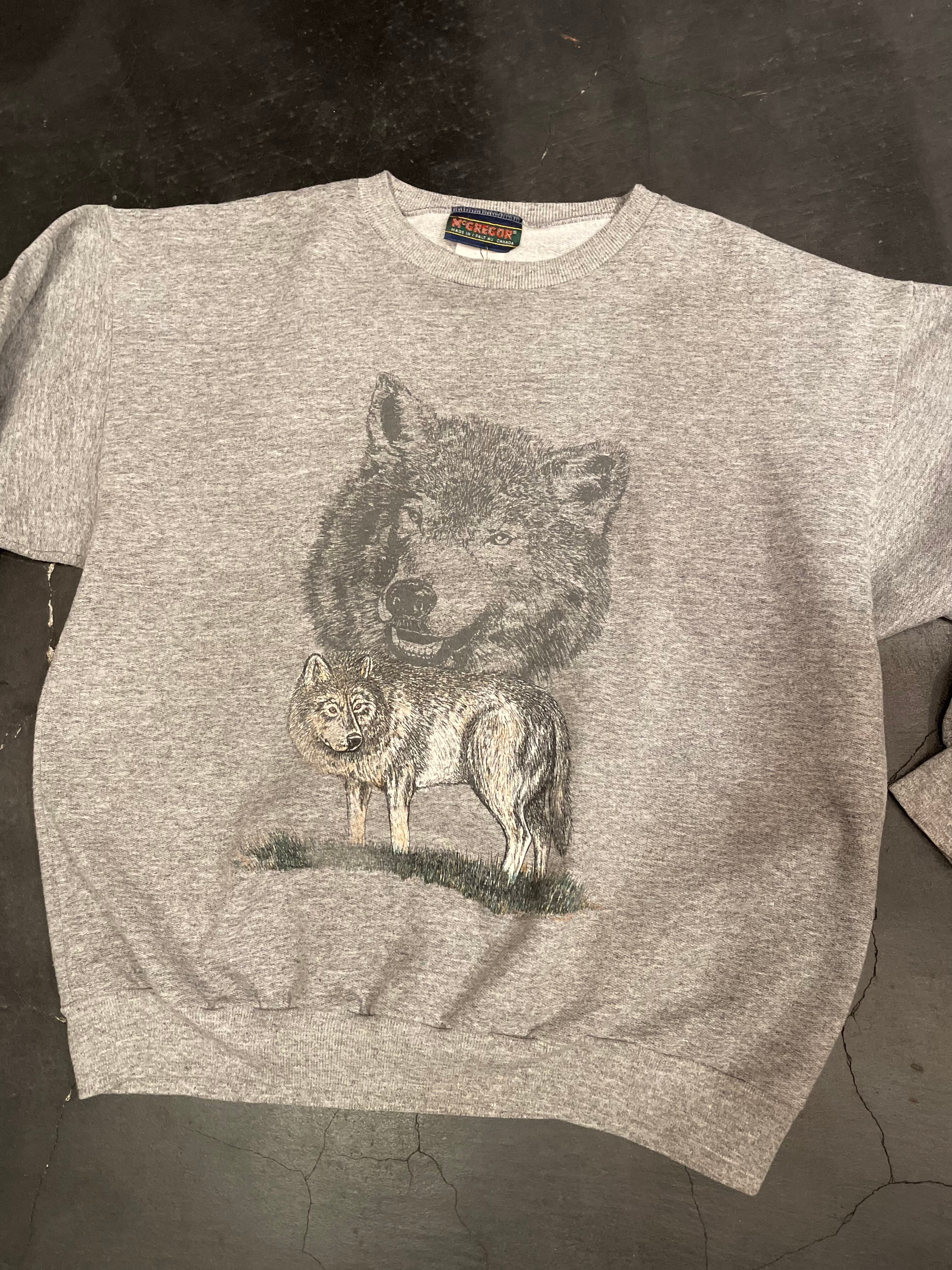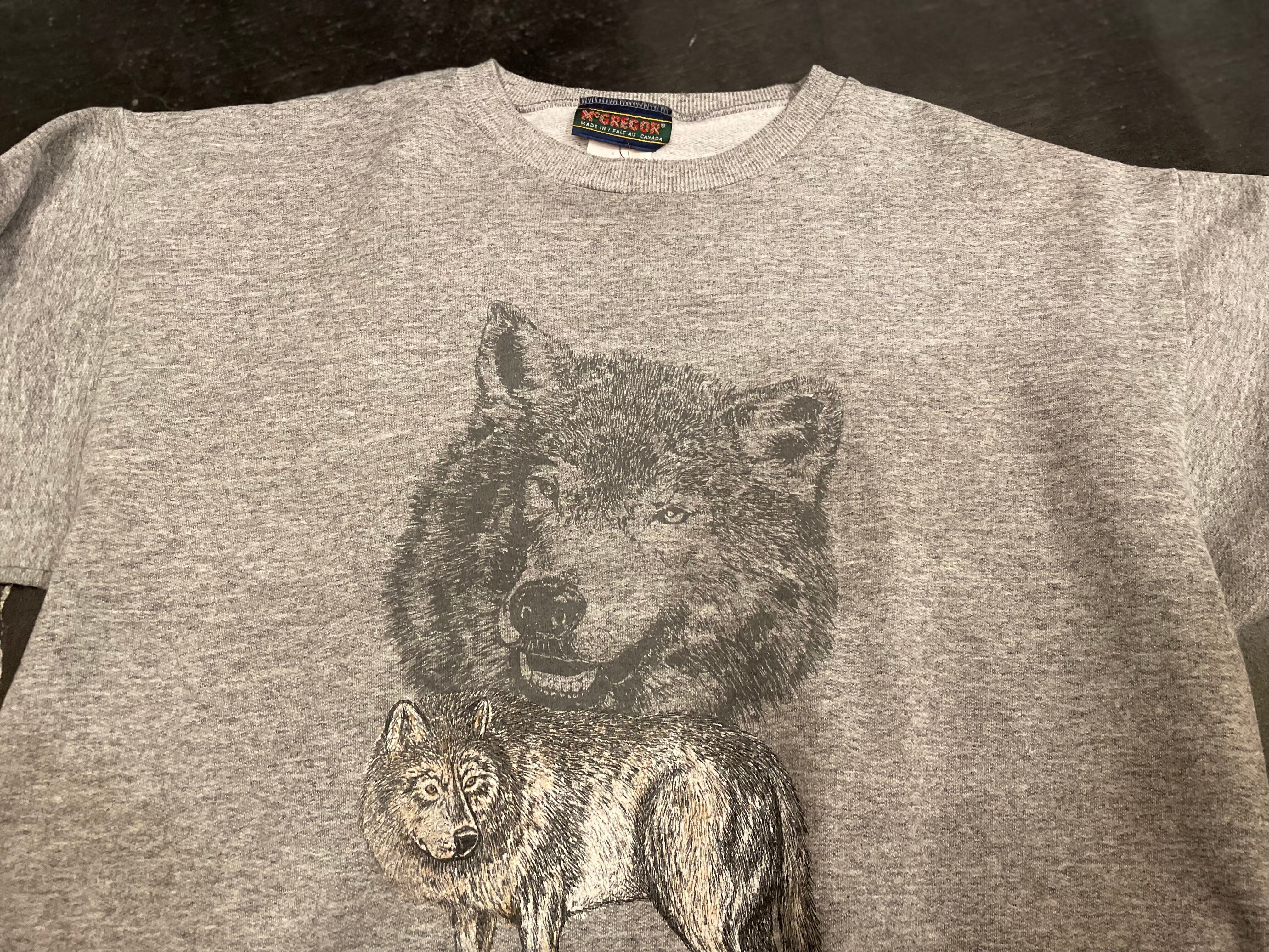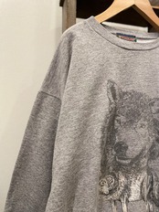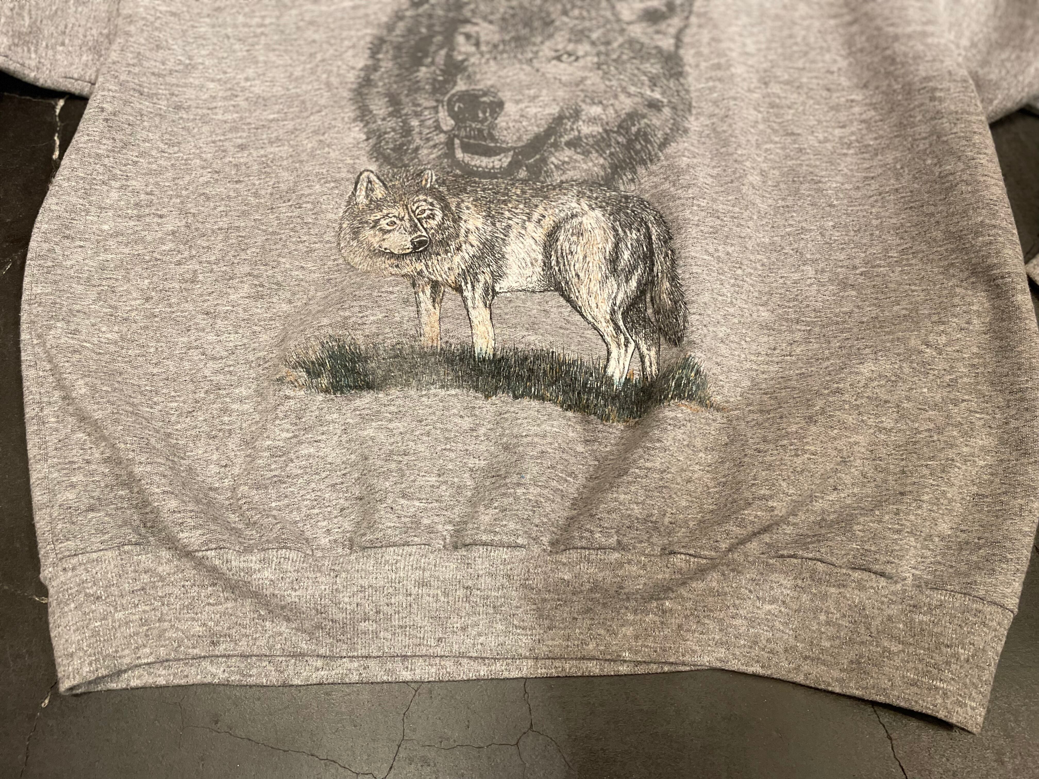 グレーボディにオオカミのプリントが目を惹くビンテージスウェット。