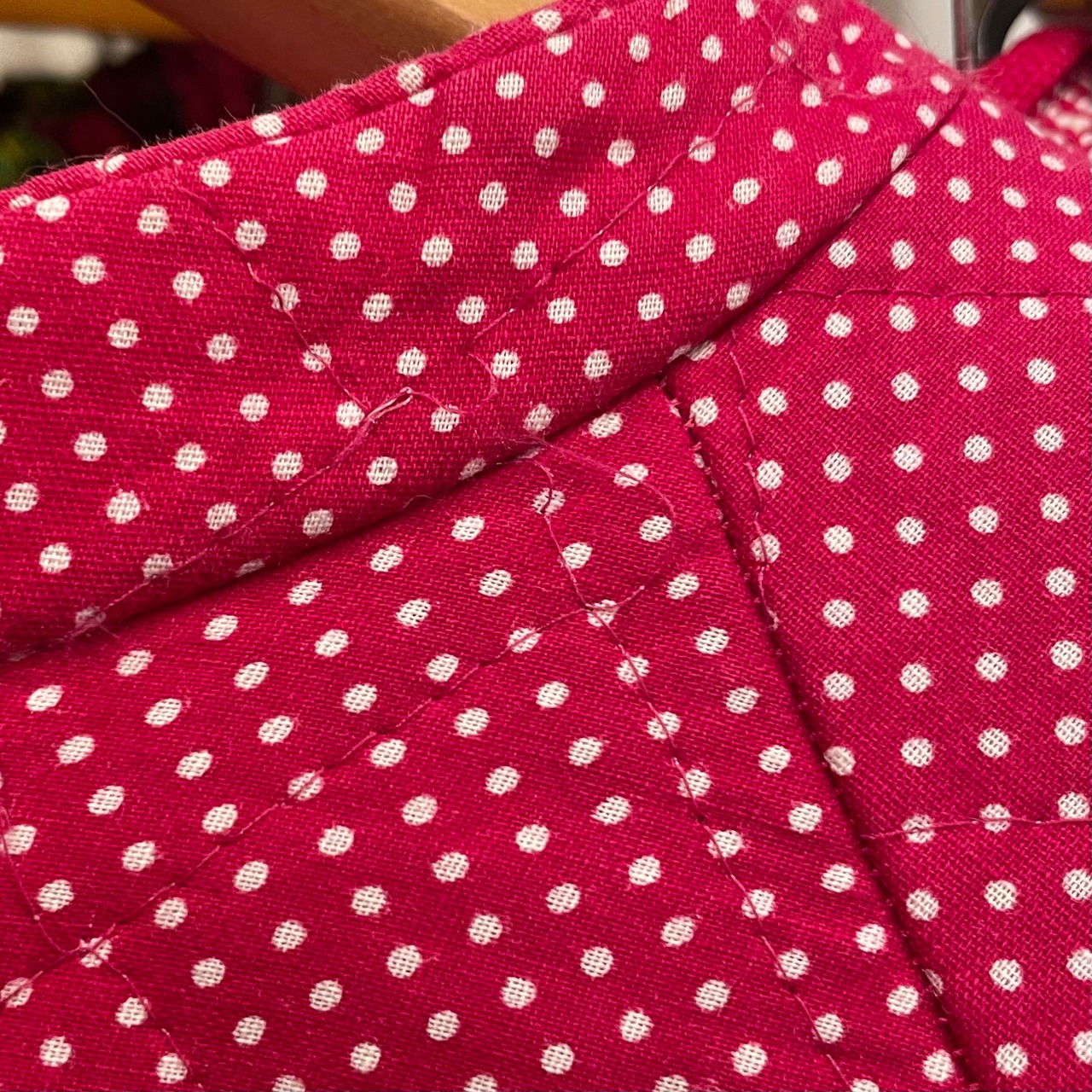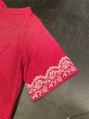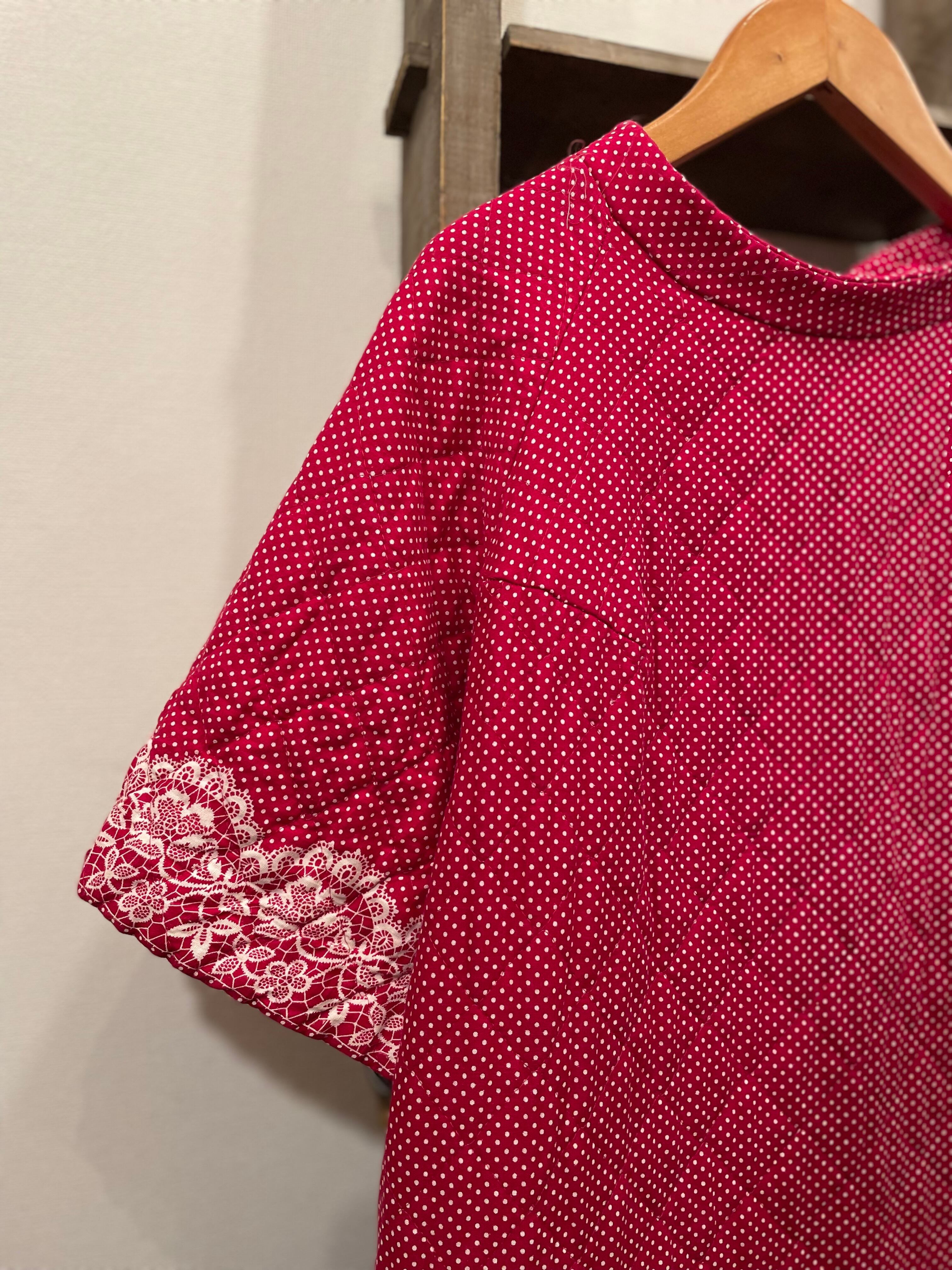 深いレッドボディに、ピンドットと花柄のプリントが素敵なアイテム◎◎◎