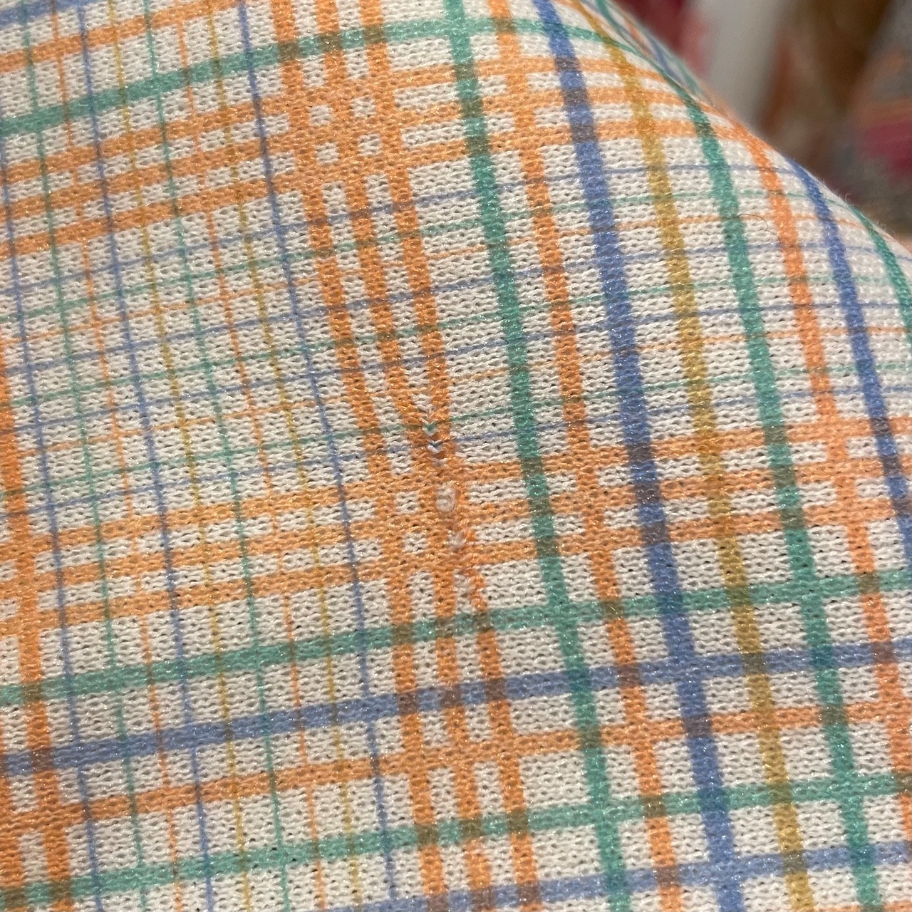 ホワイトボディオレンジ、ブルー、グリーン等のチェックプリントが目を惹きます。