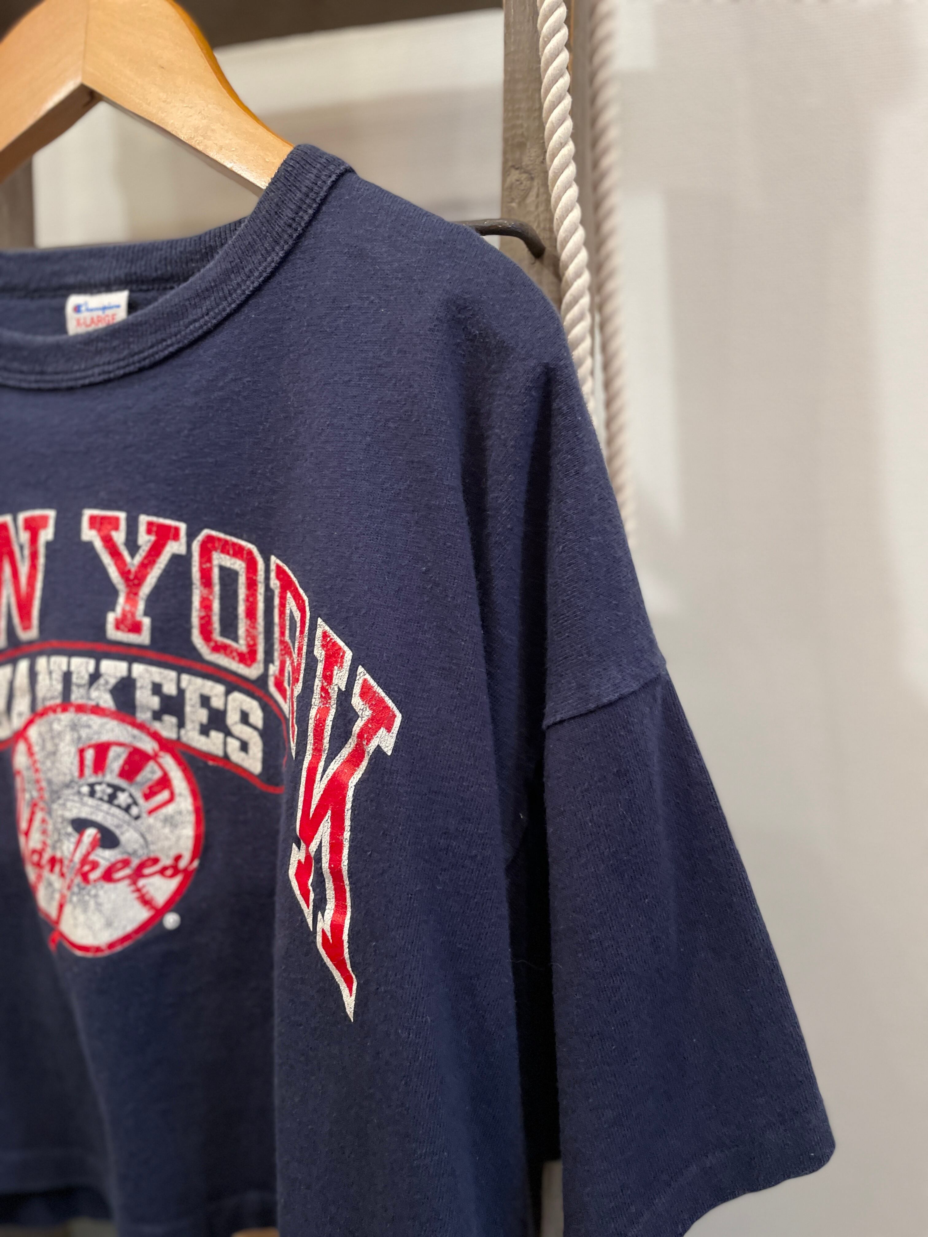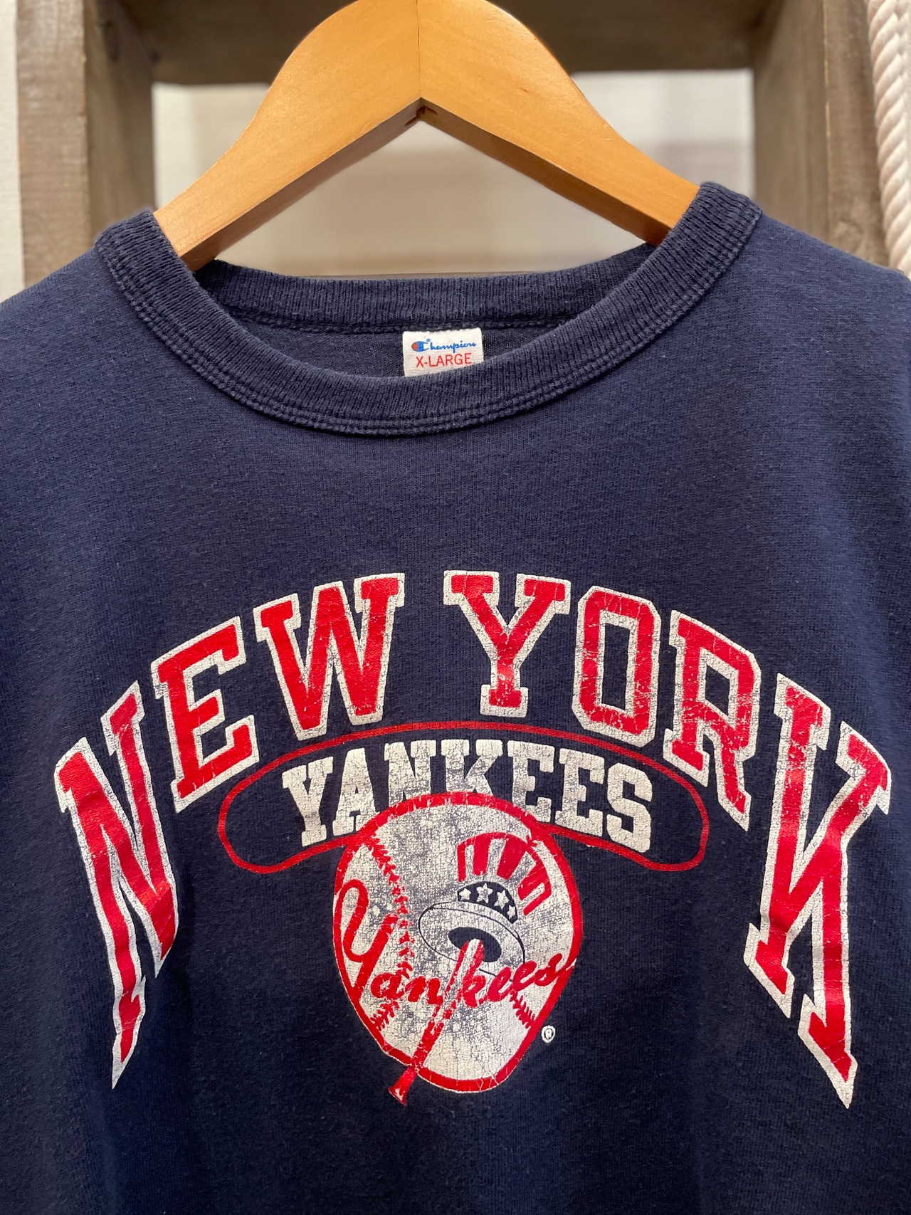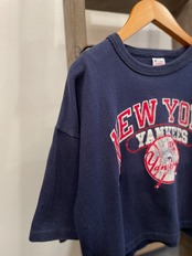 ネイビーボディに、フロントにはベースボールチームのNEW YORK YANKEESのプリントが施されております。