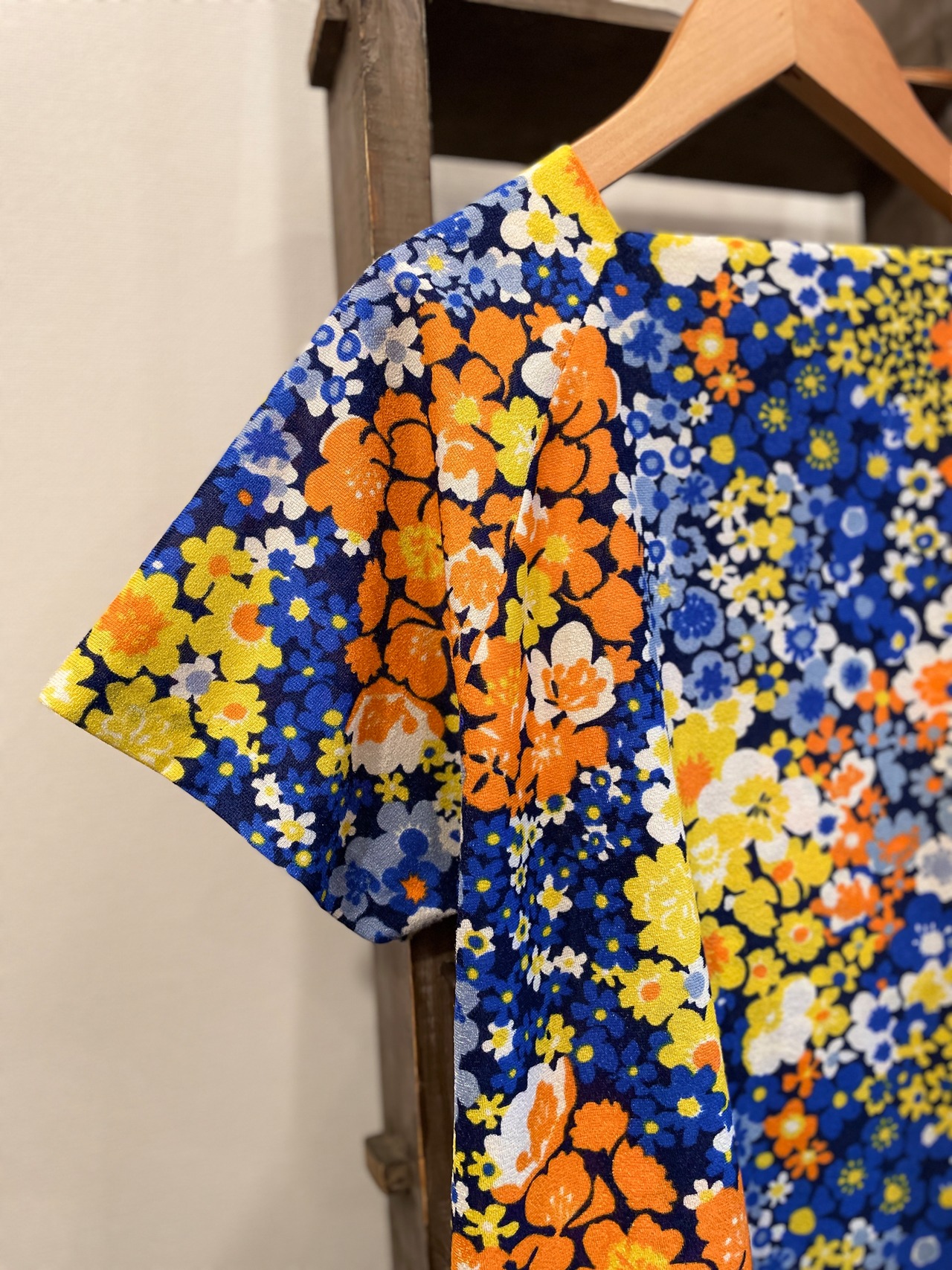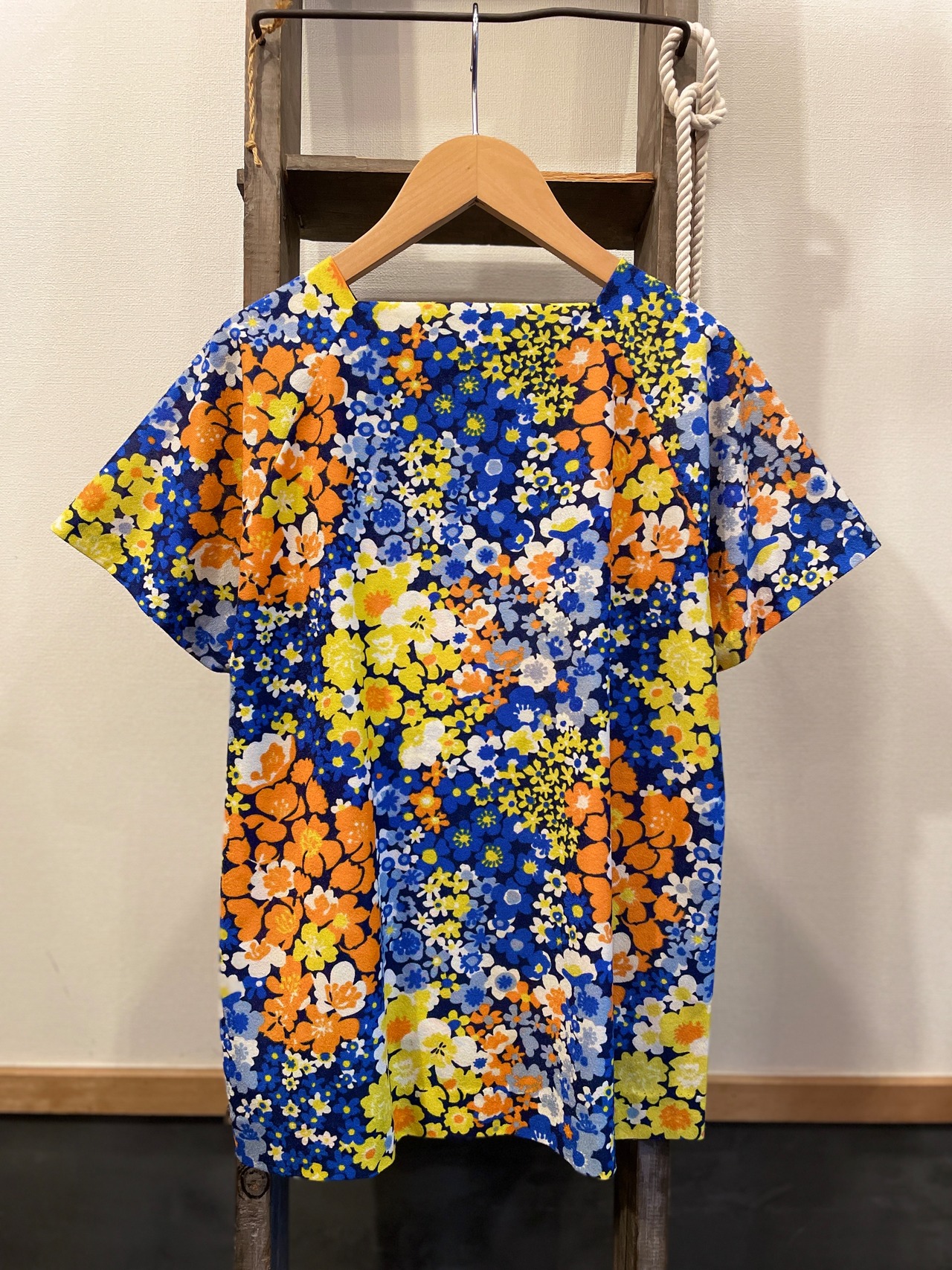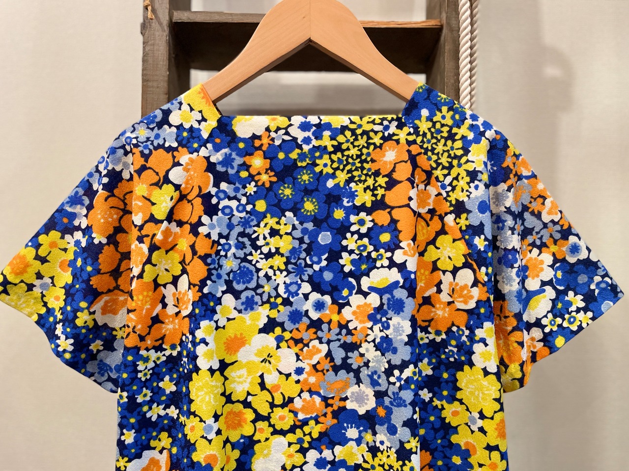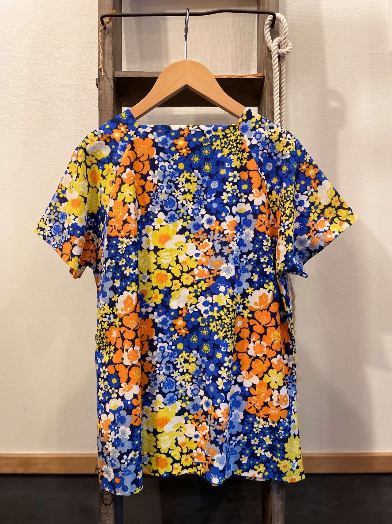 華やかなフラワープリントがステキな70sビンテージトップス。
