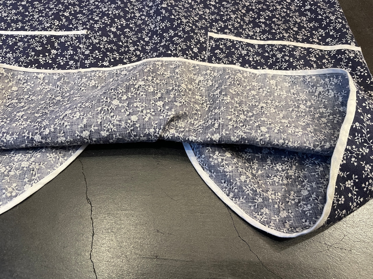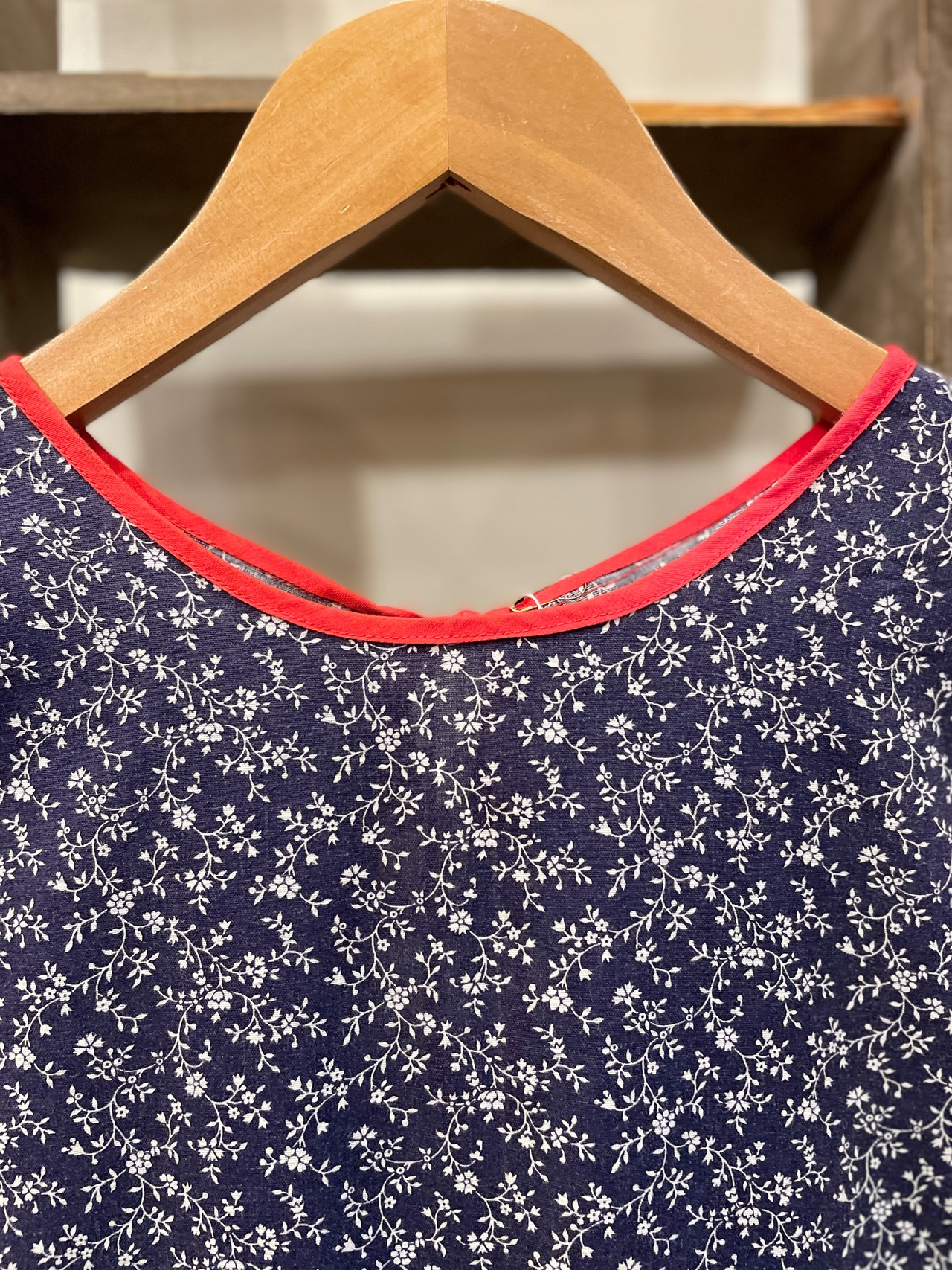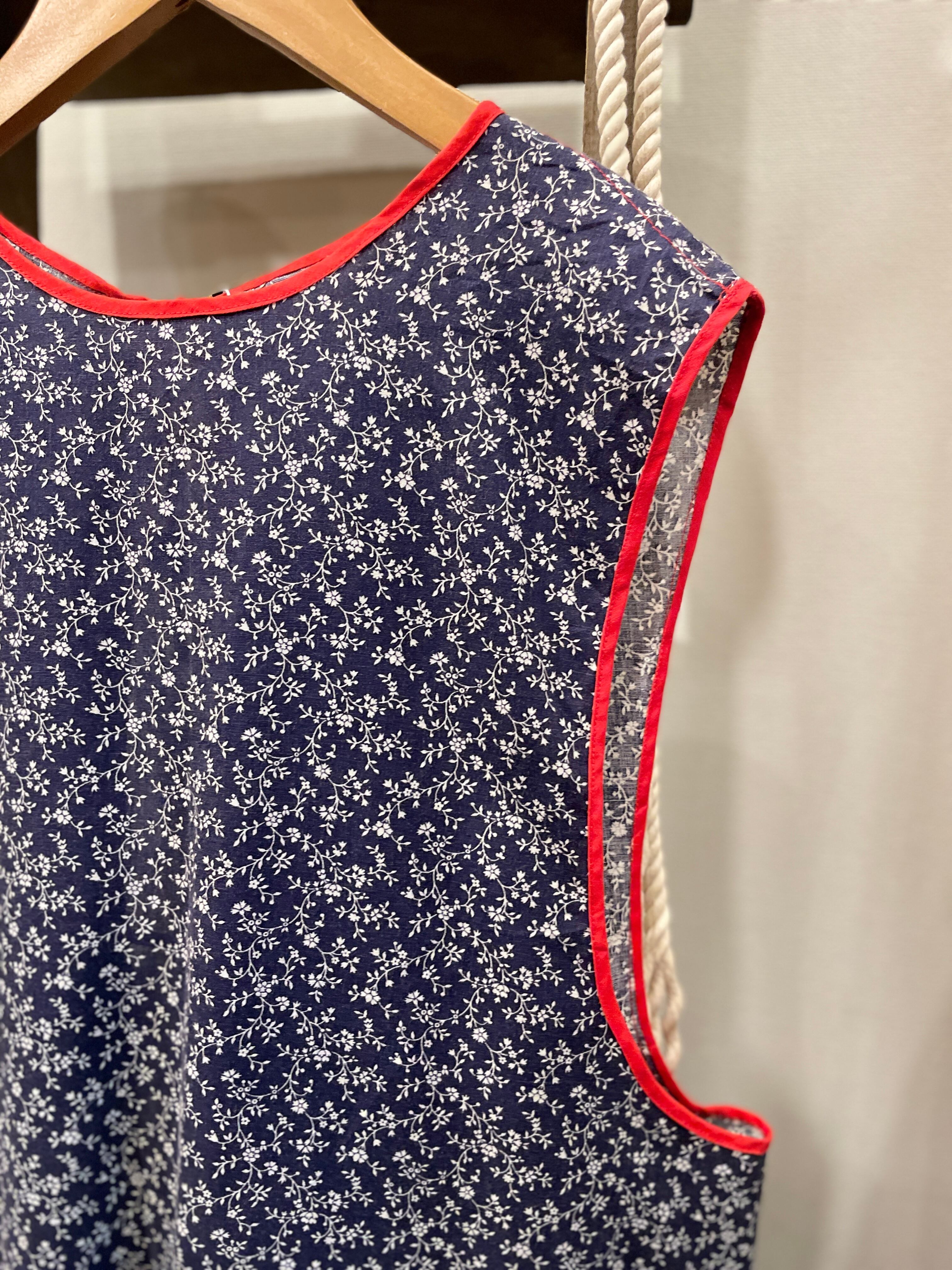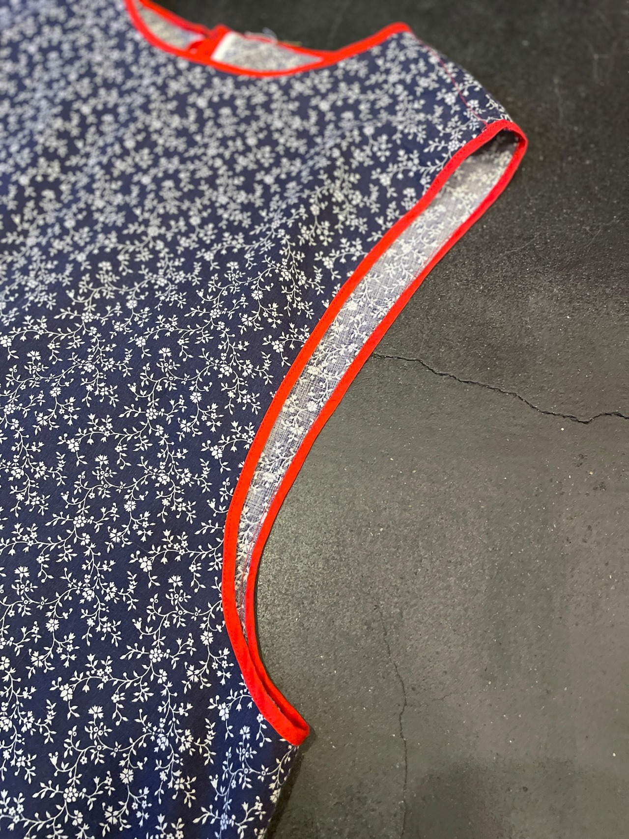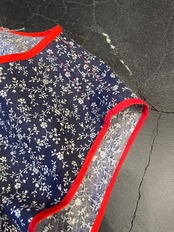 ラブリーになりすぎないネイビーの小花柄ボディに赤いパイピングがナイスアクセント !!!