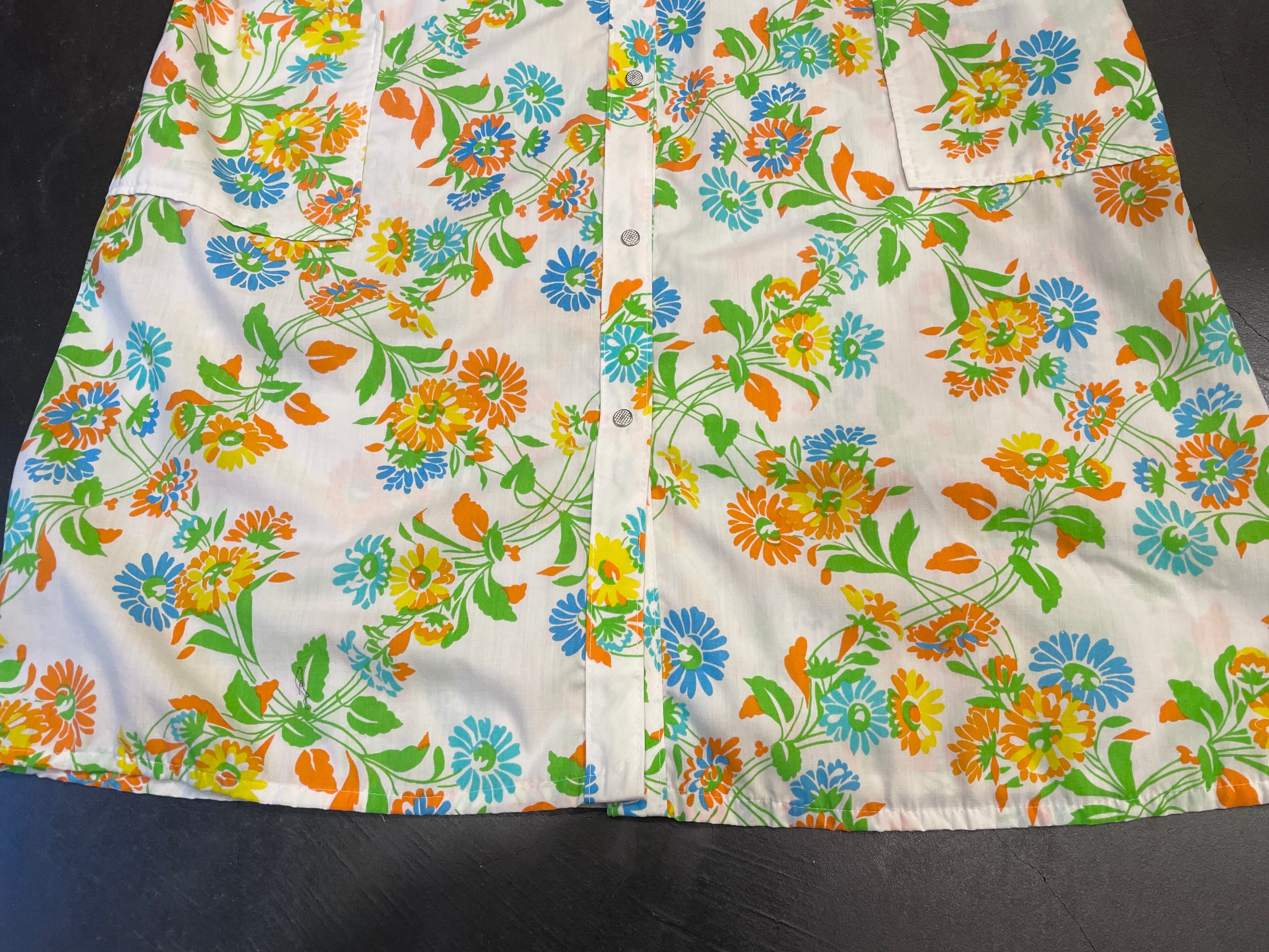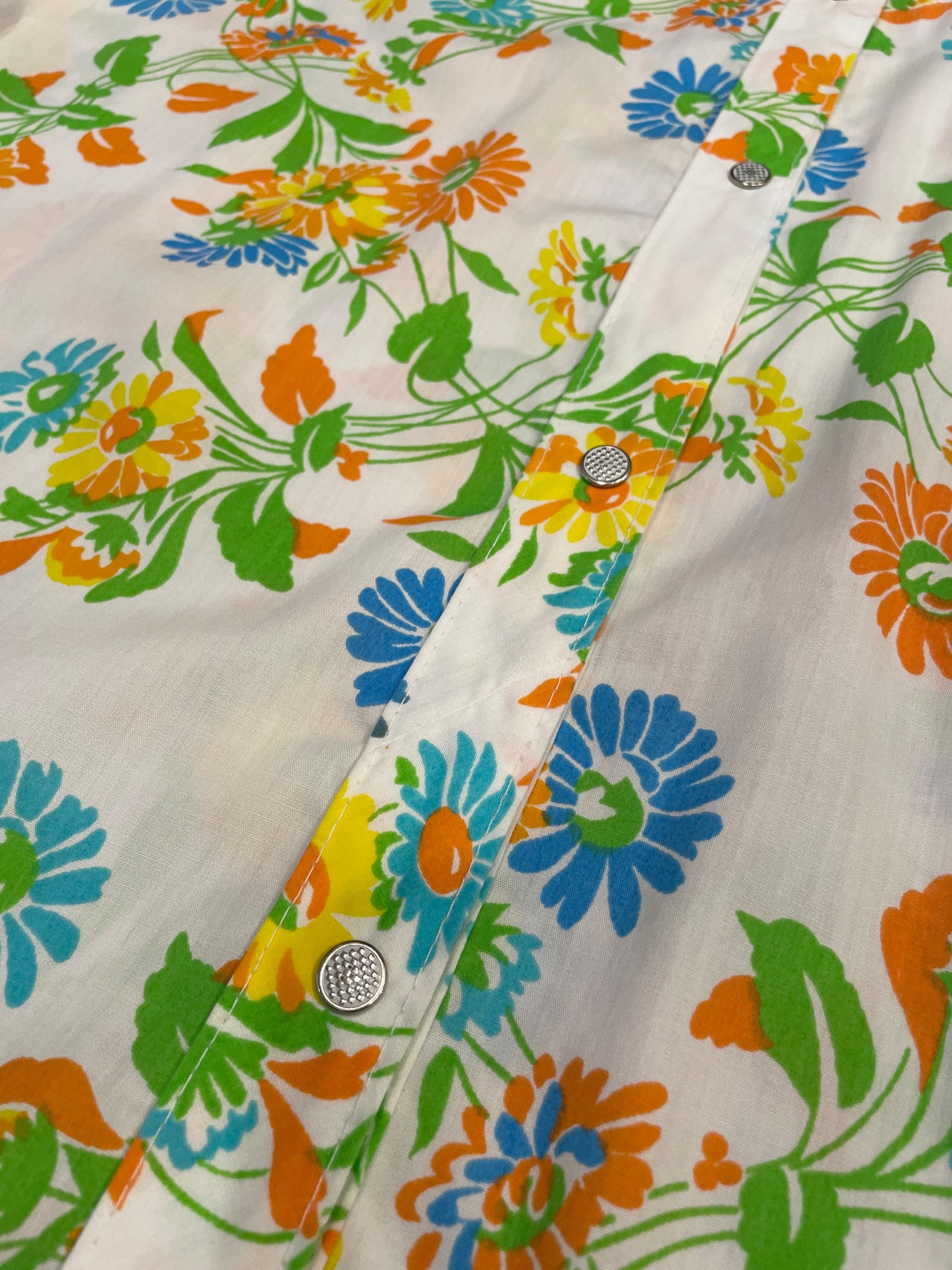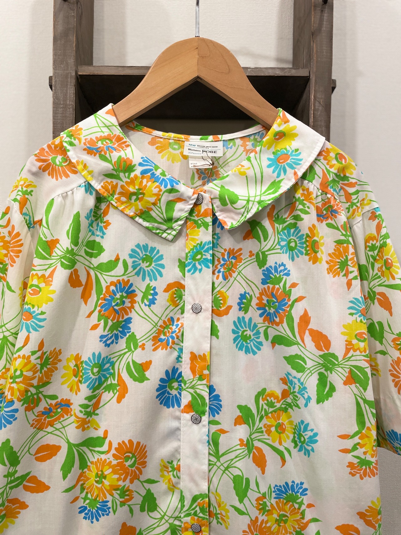 ハッピーなフラワープリントが可愛い70sビンテージガウン。