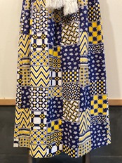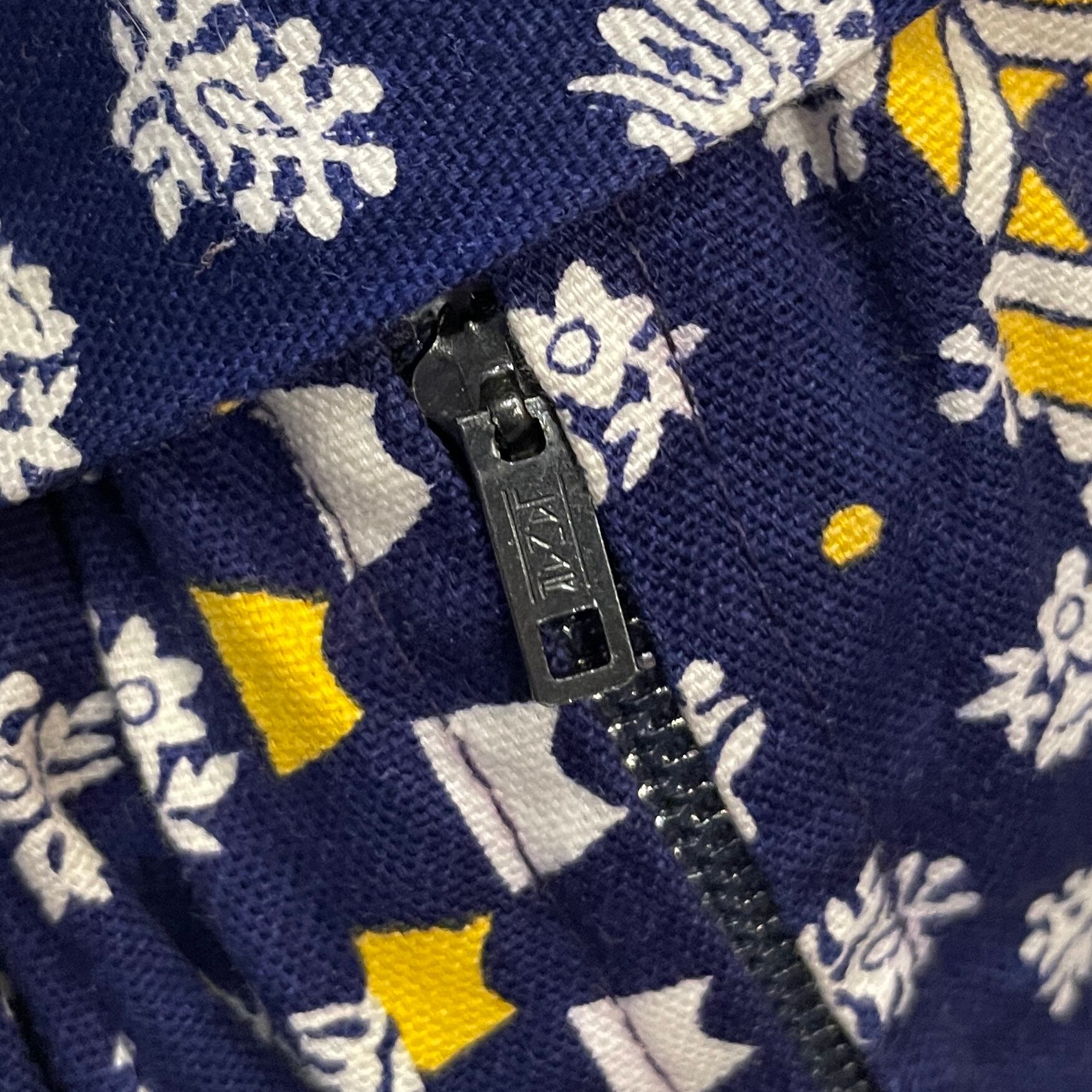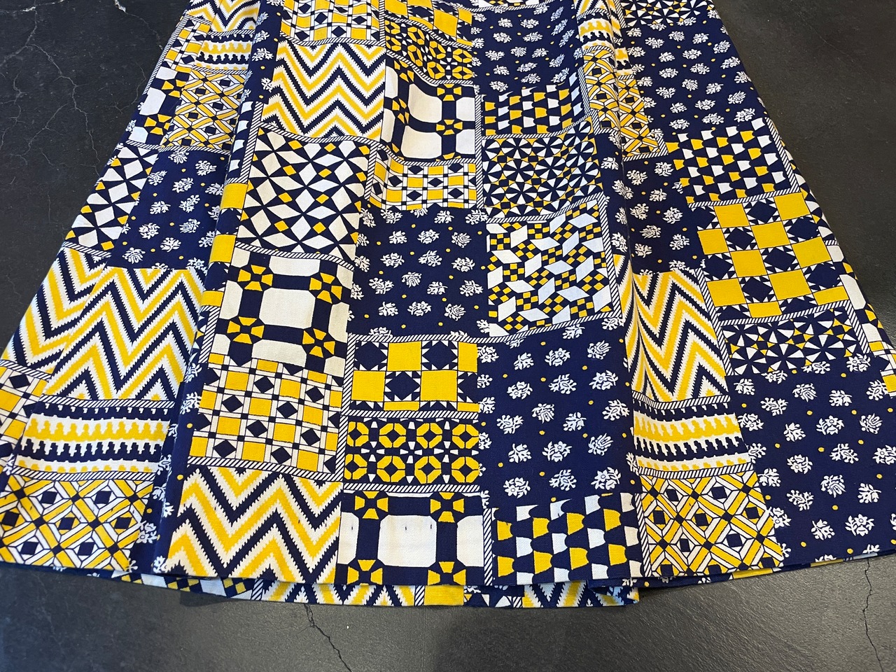 ダイヤやジグザグや花柄が規則的に描かれ幾何学調なプリントがパッチワークのような切り替えになった素敵なアイテム◎◎◎