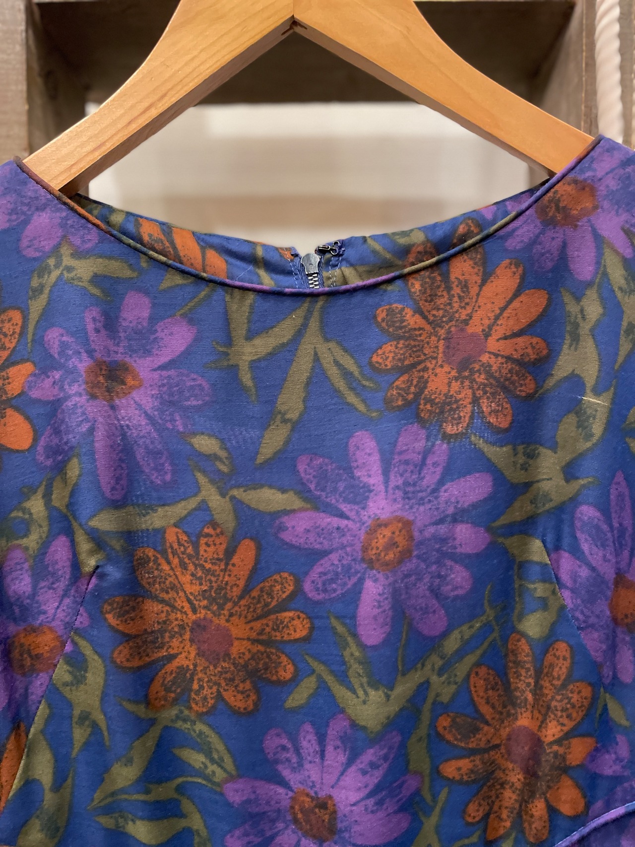ネイビーボディにオレンジとパープルのかすり調なデイジープリントがgood◎◎◎