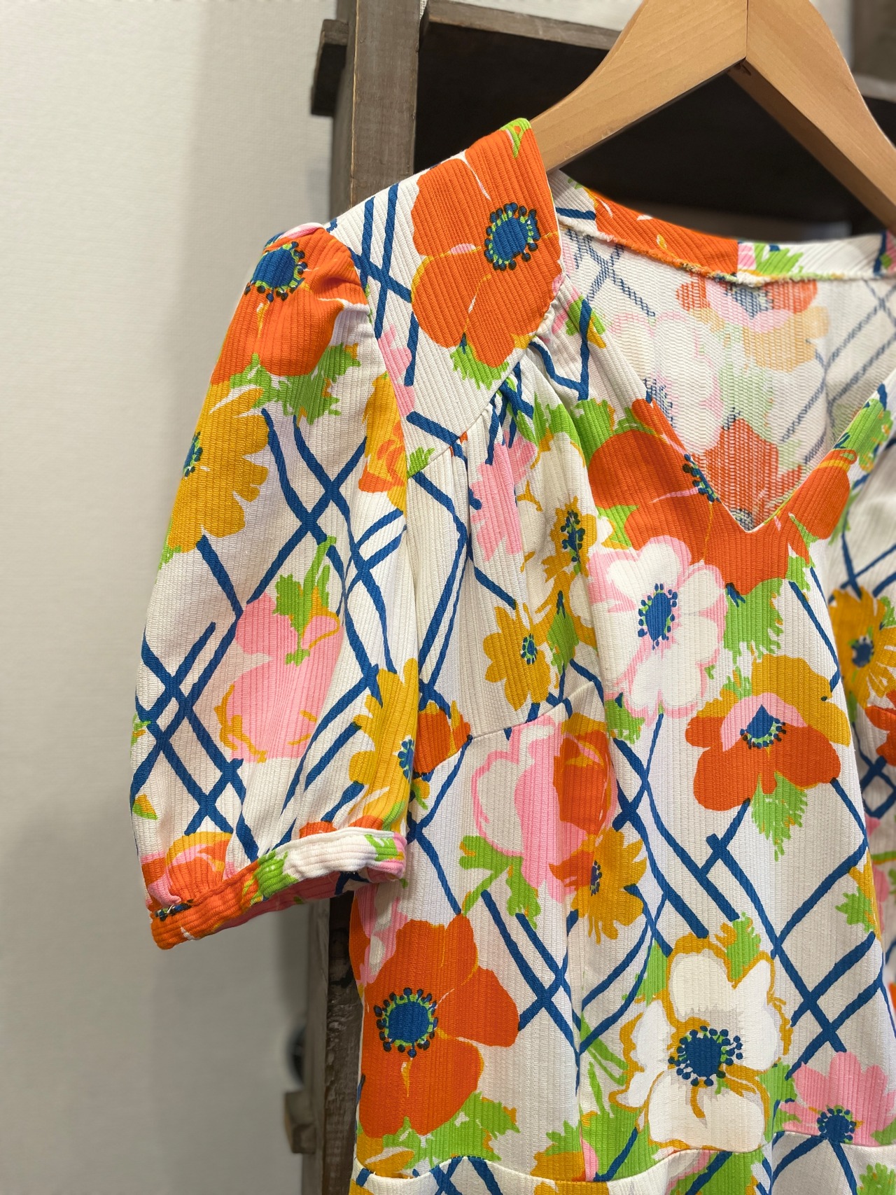 ホワイトボディに華やかな可愛らしいフラワープリントが施されたアイテム。
