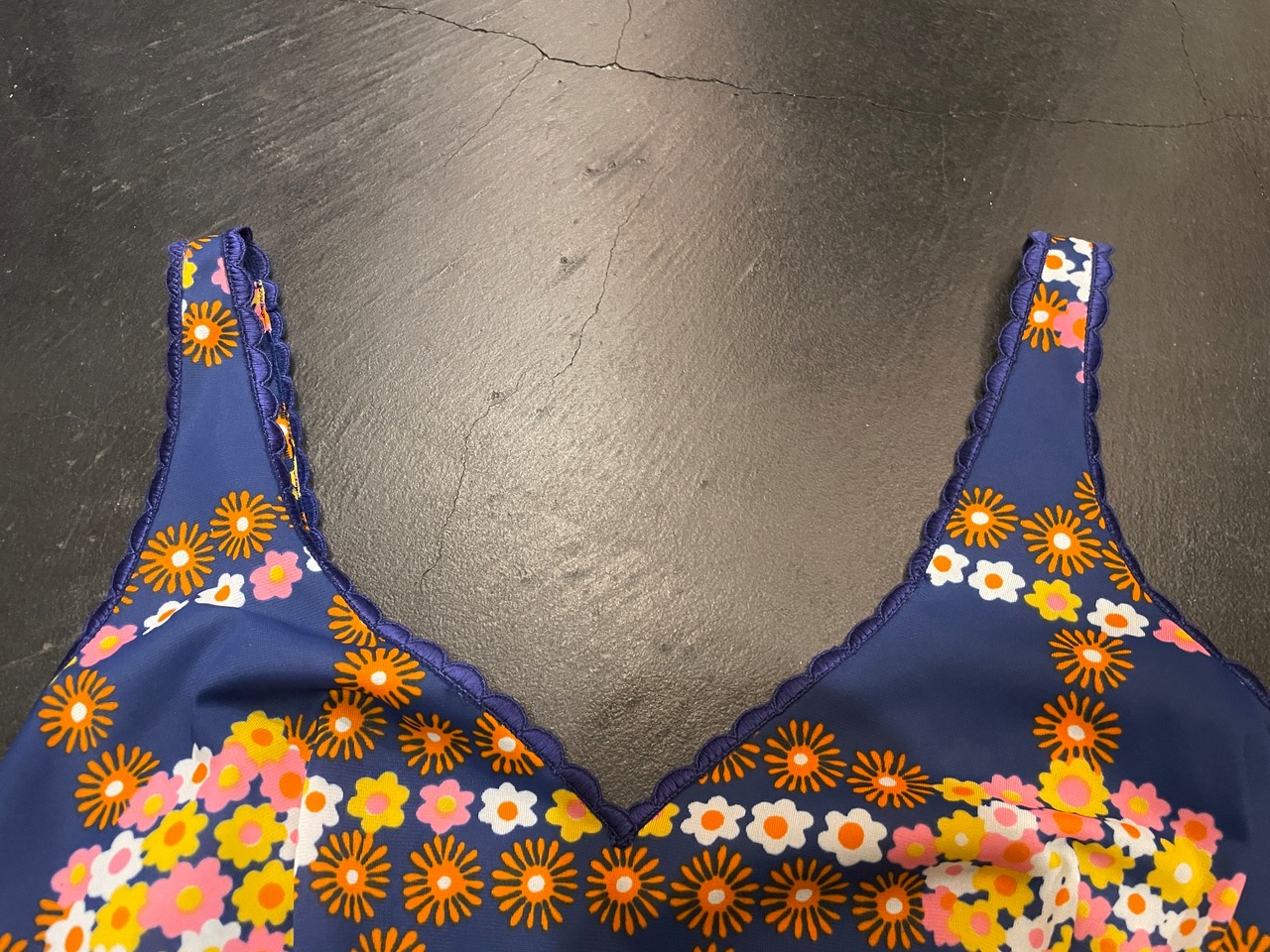 ネイビーボディにポップな花柄プリントがgood◎