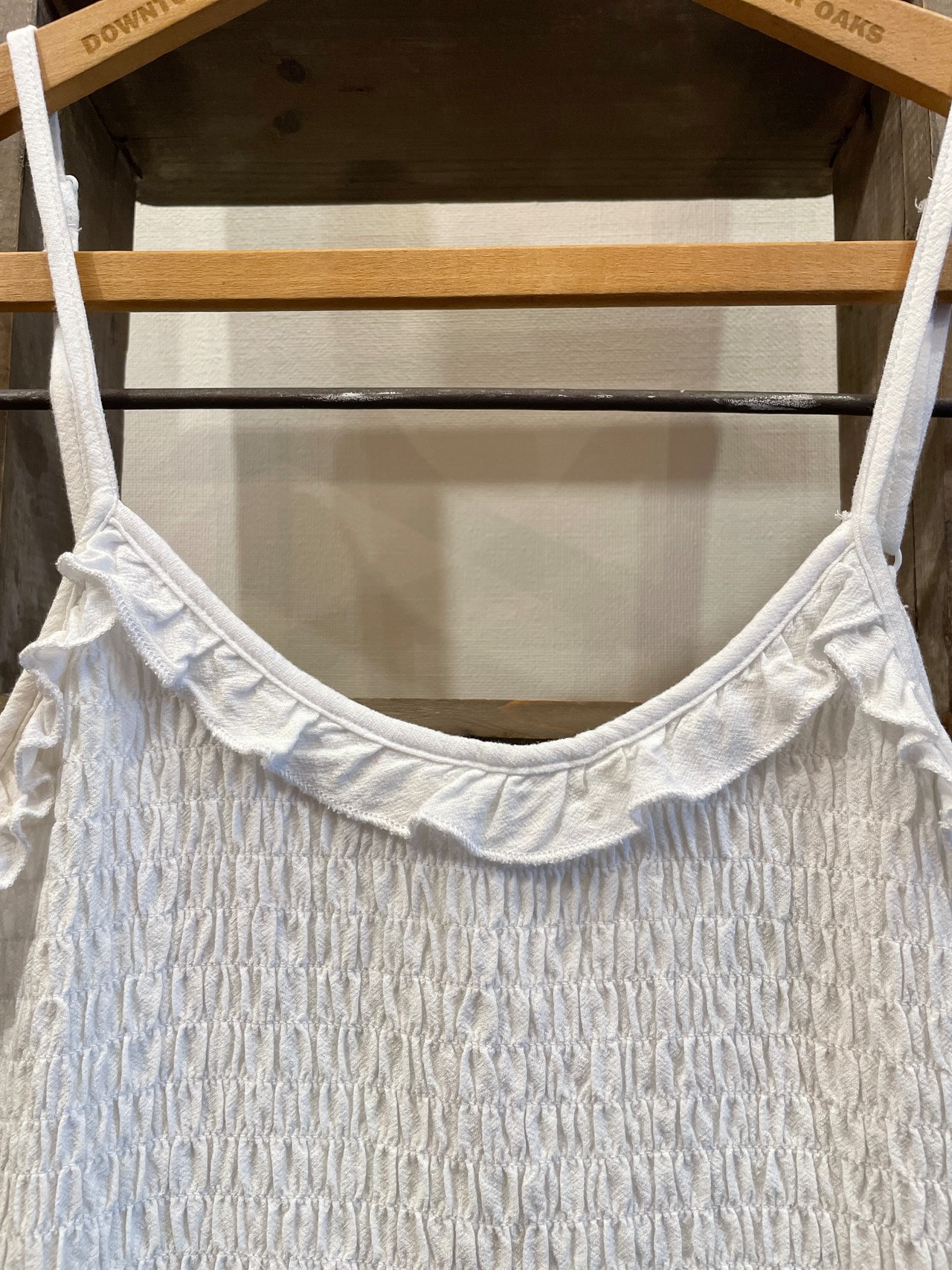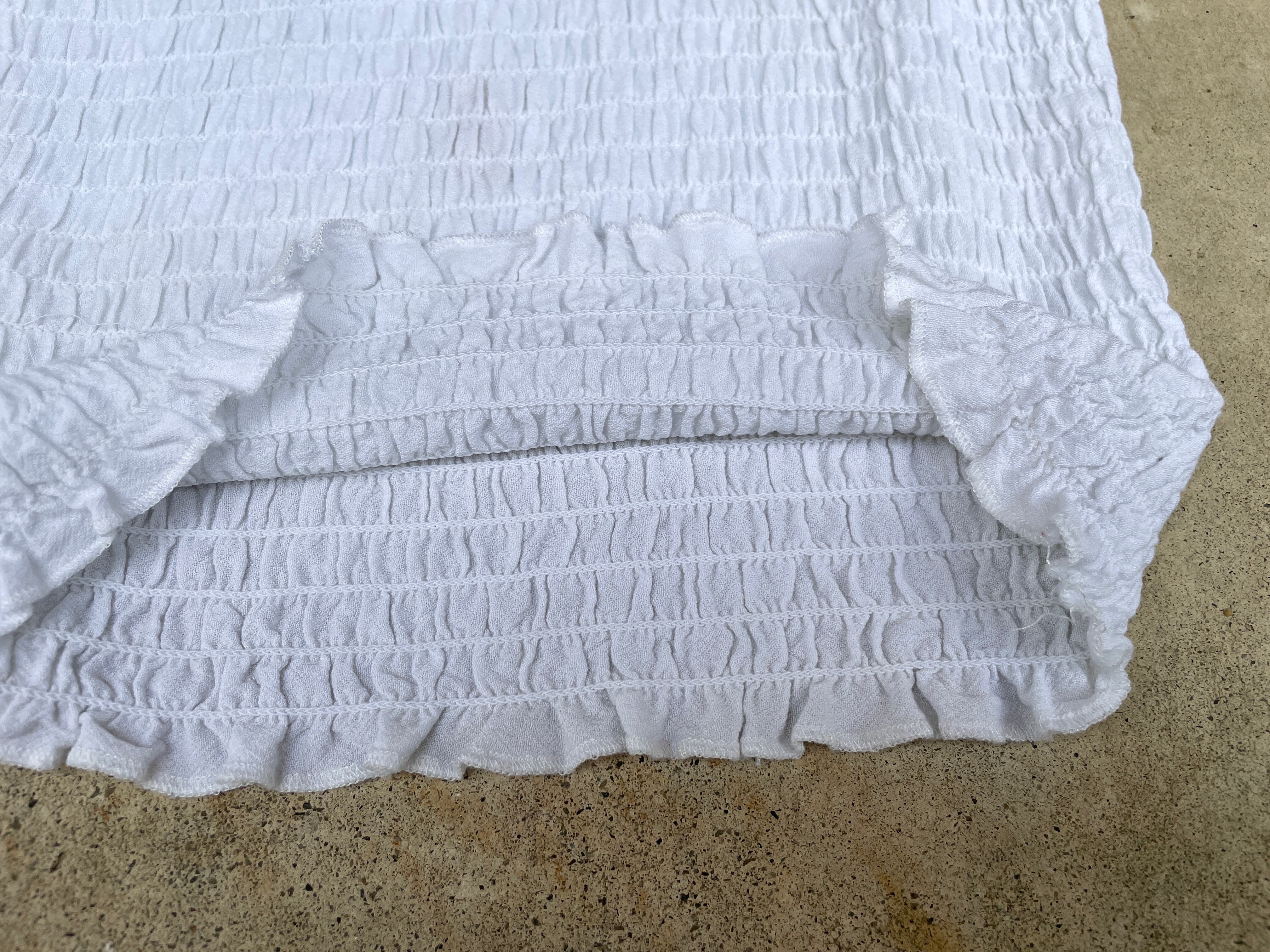 シンプルなオールホワイトにフリルデザインが可愛らしいアイテム。
