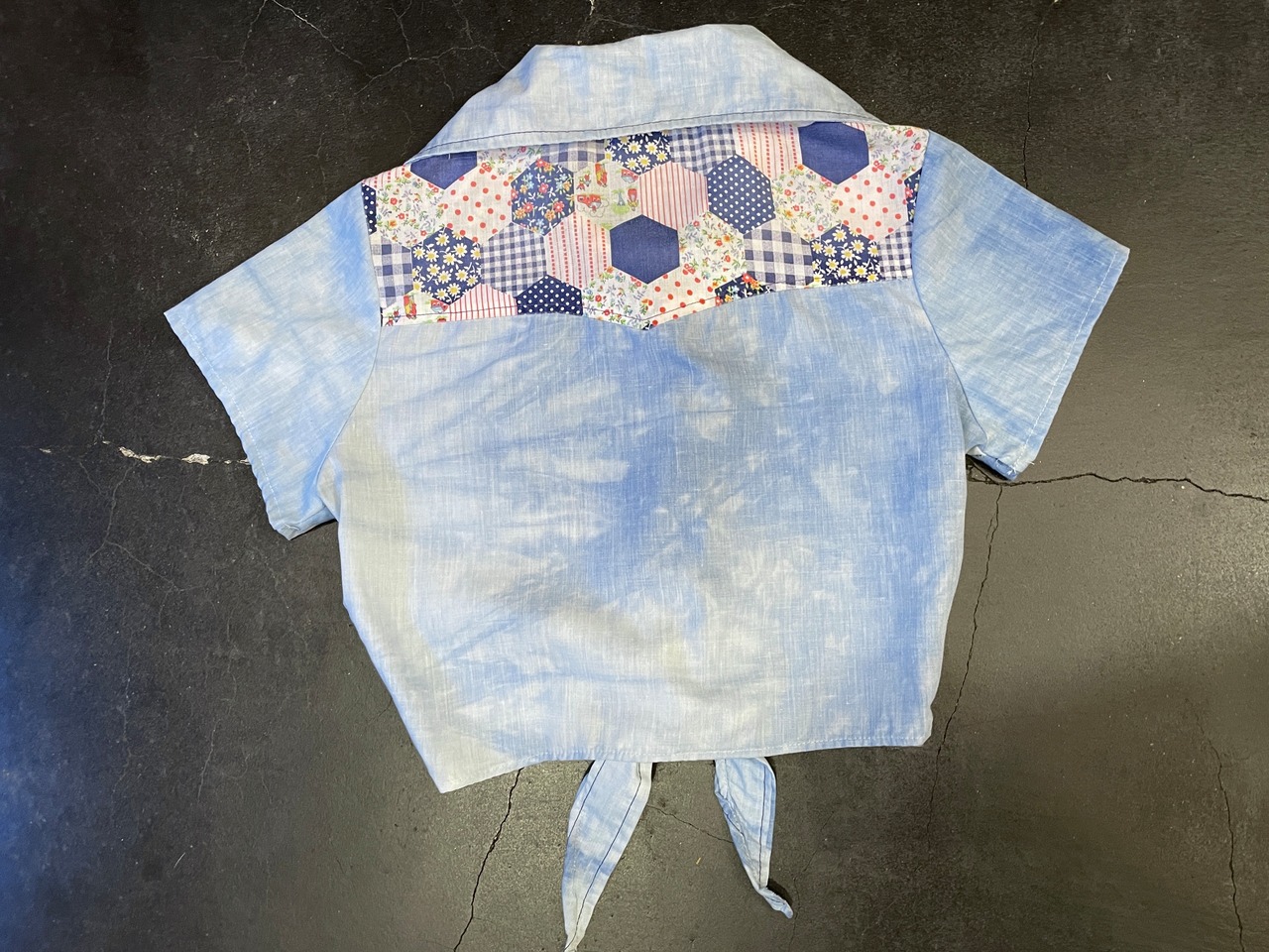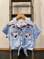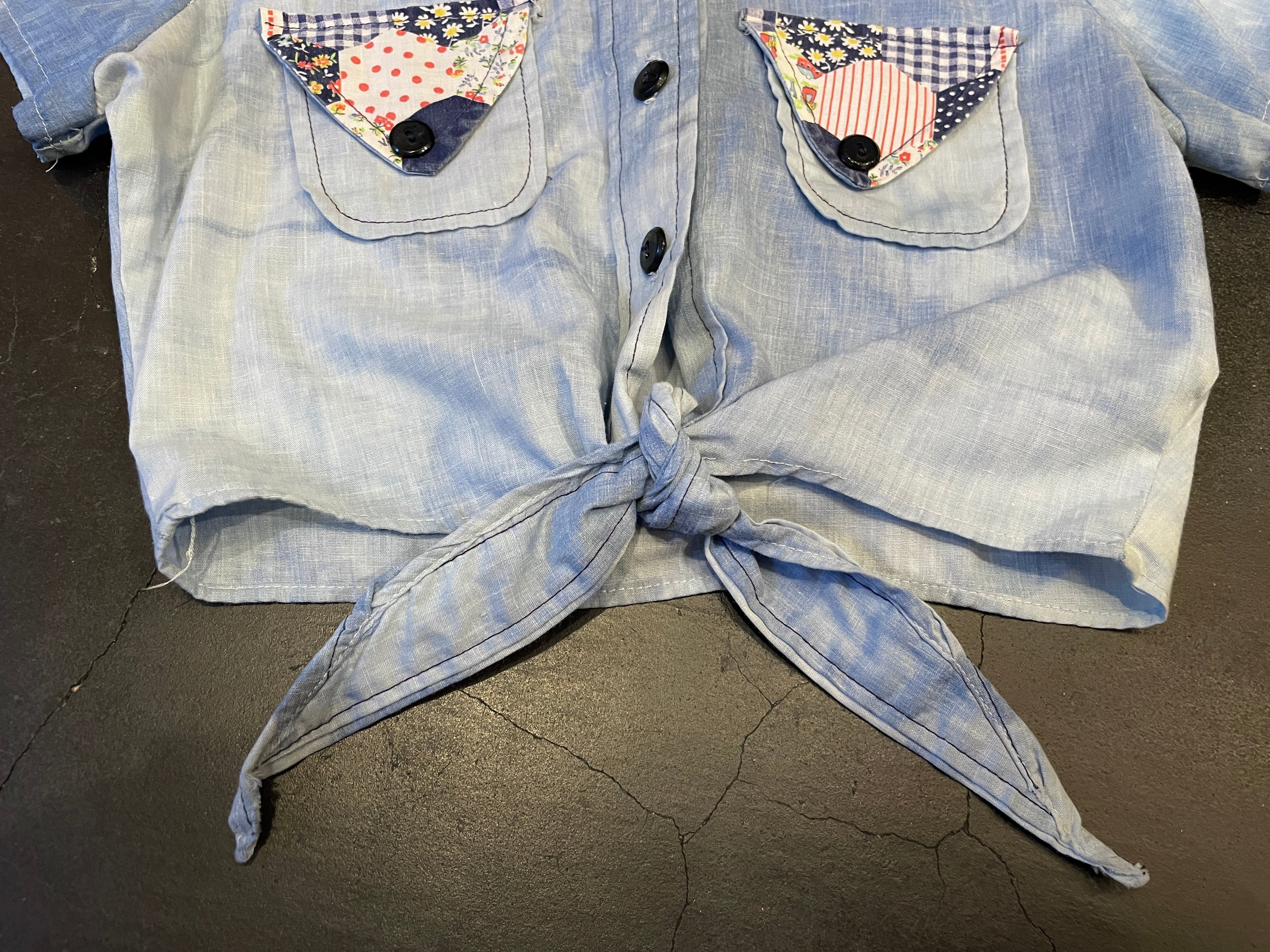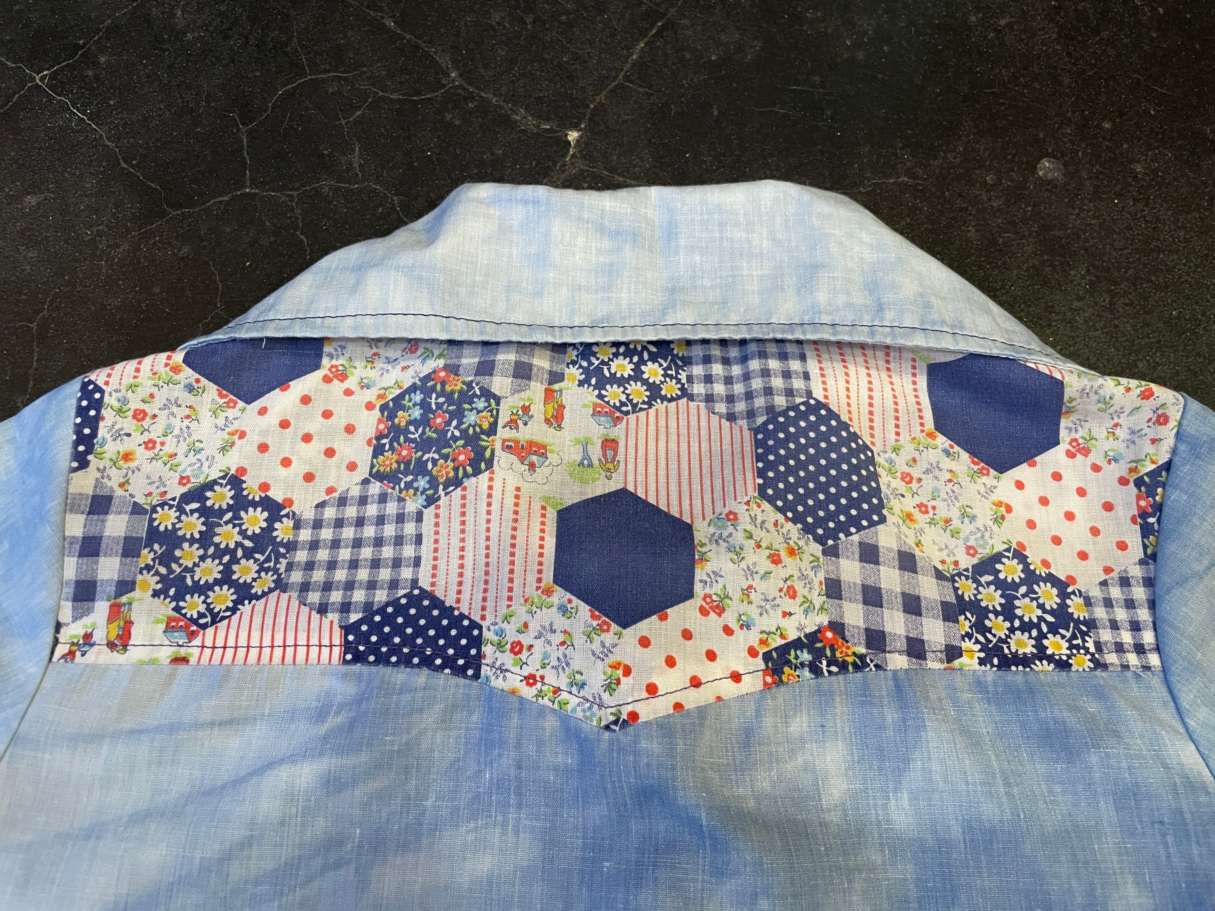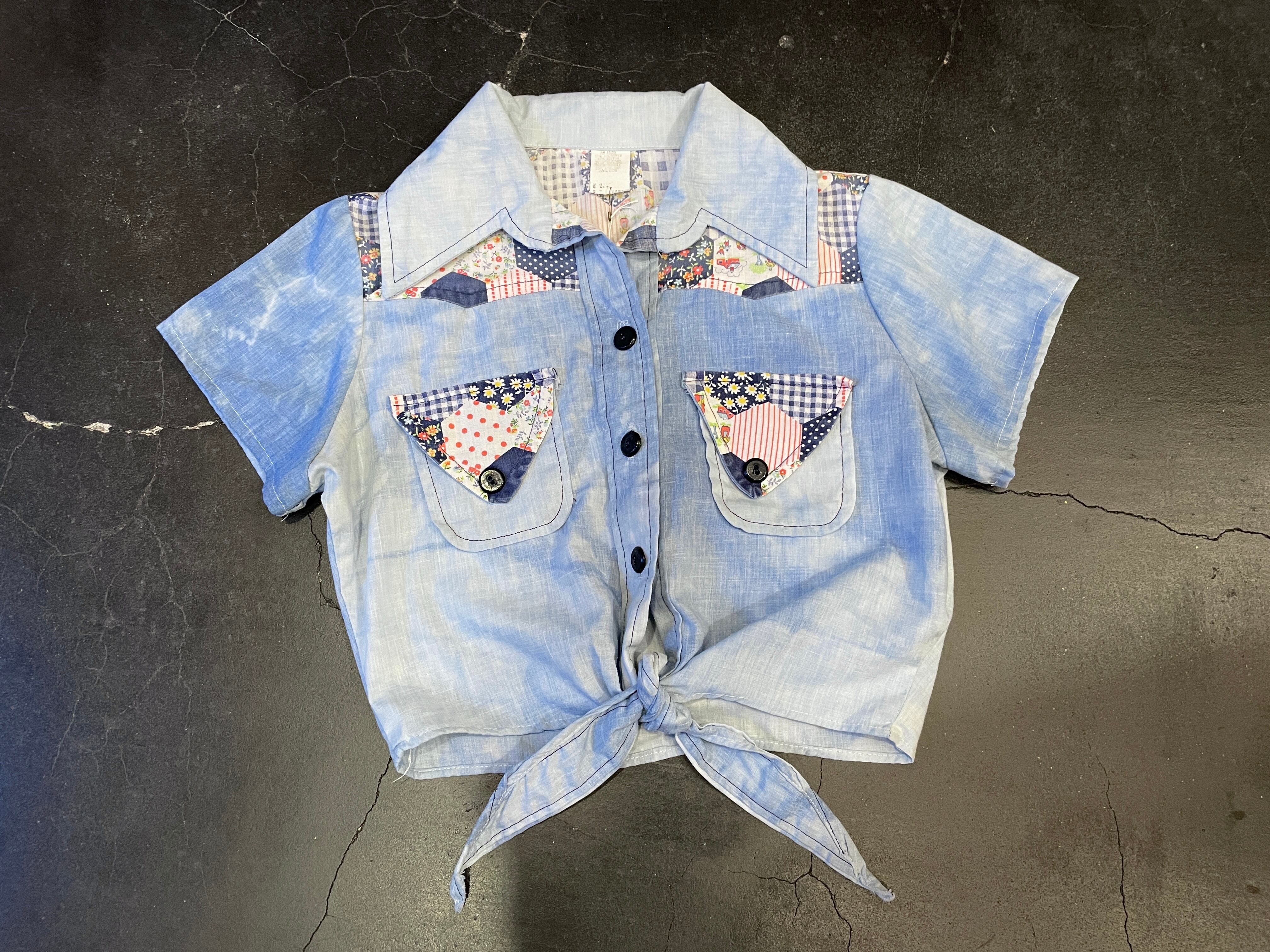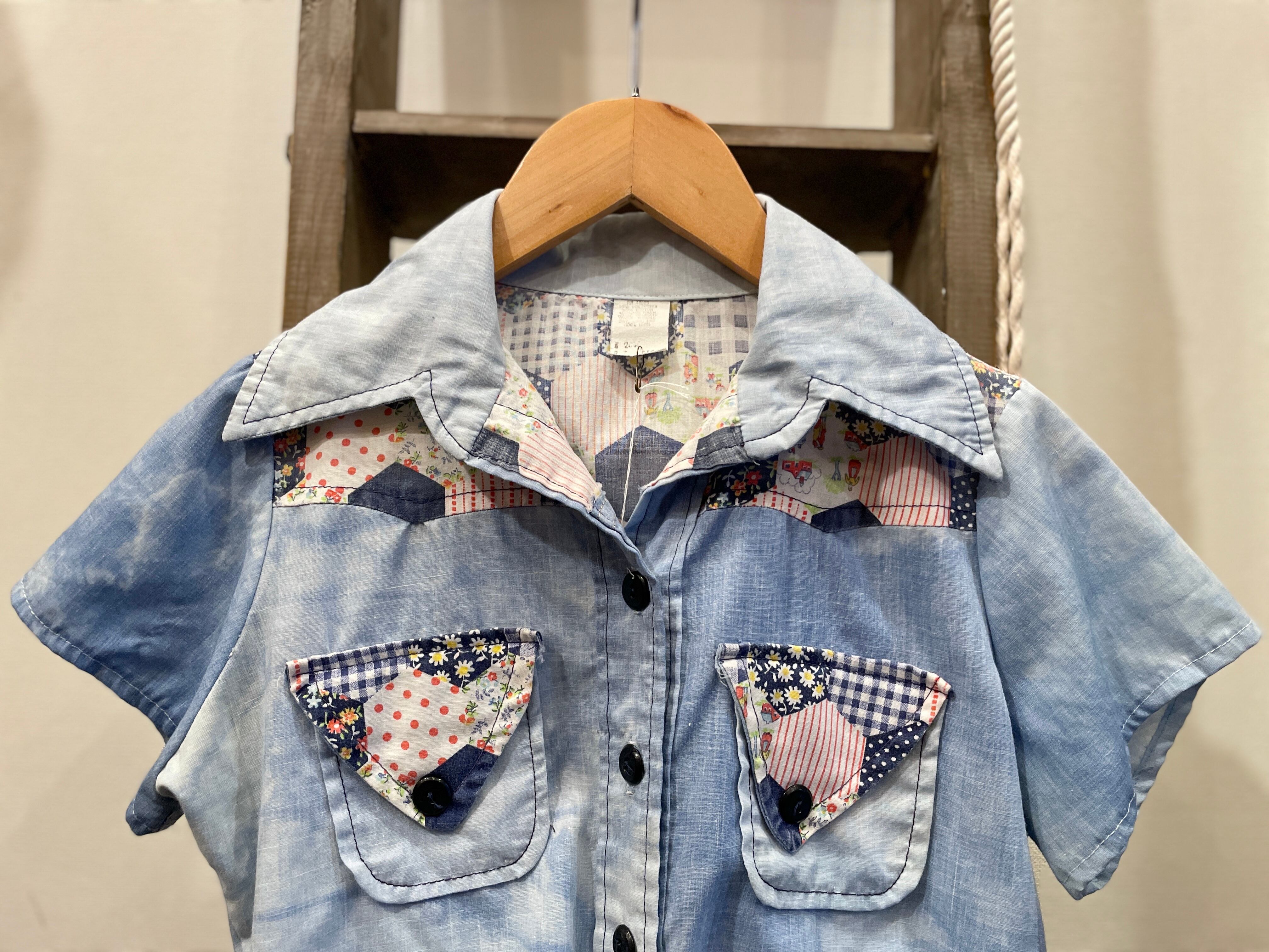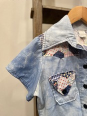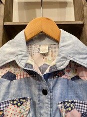 こちらはブリーチ?が加わったシャンブレーボディに、ヨーク切り替えとポケット部分にパッチワークパターンの生地が施されたアイテム◎