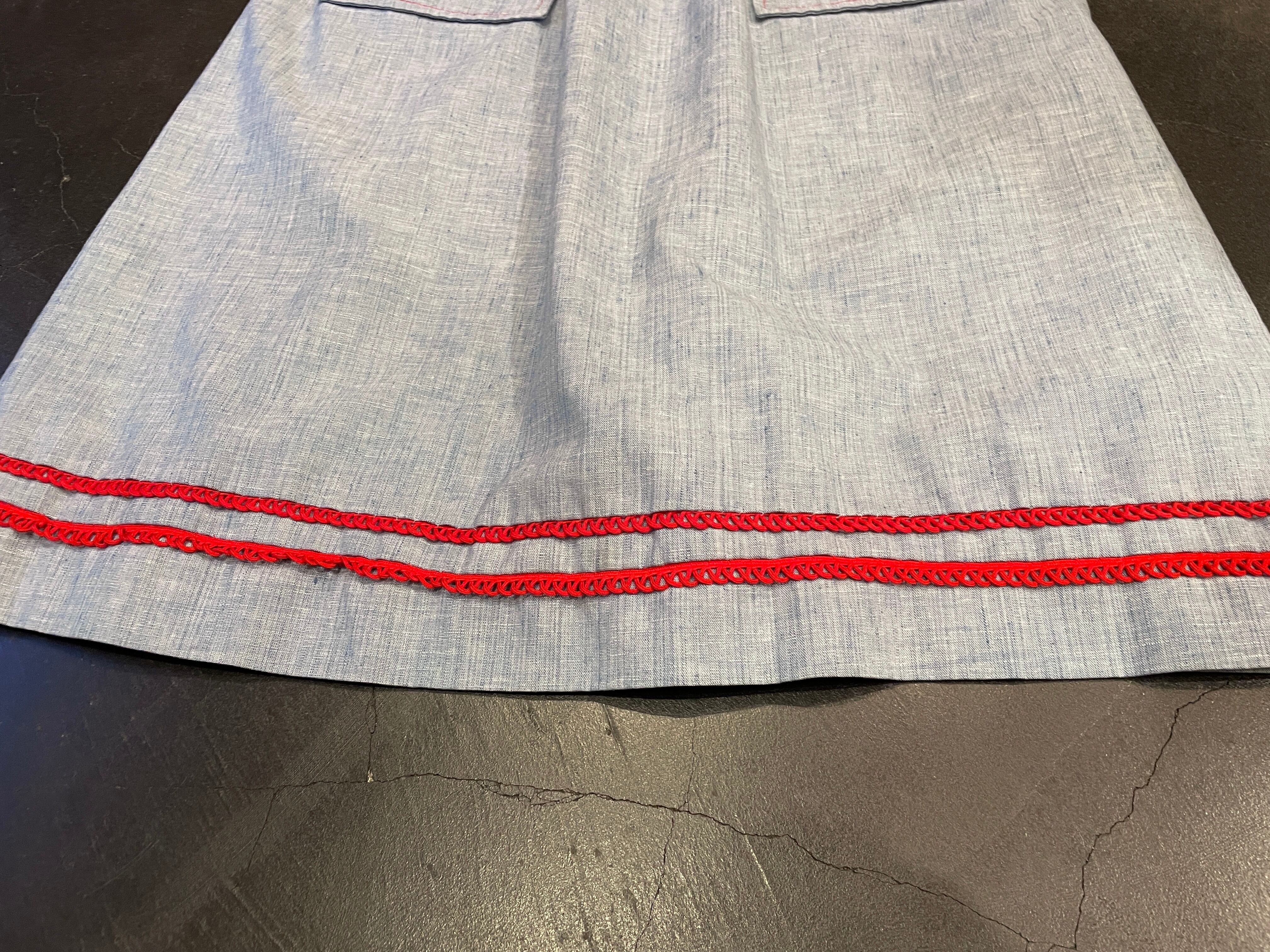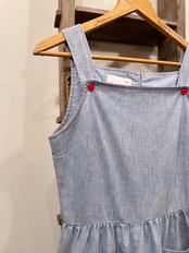 涼しげなシャンブレーボディに、クルクルとした装飾、ボタン、ステッチは赤で統一された可愛らしいアイテム◎