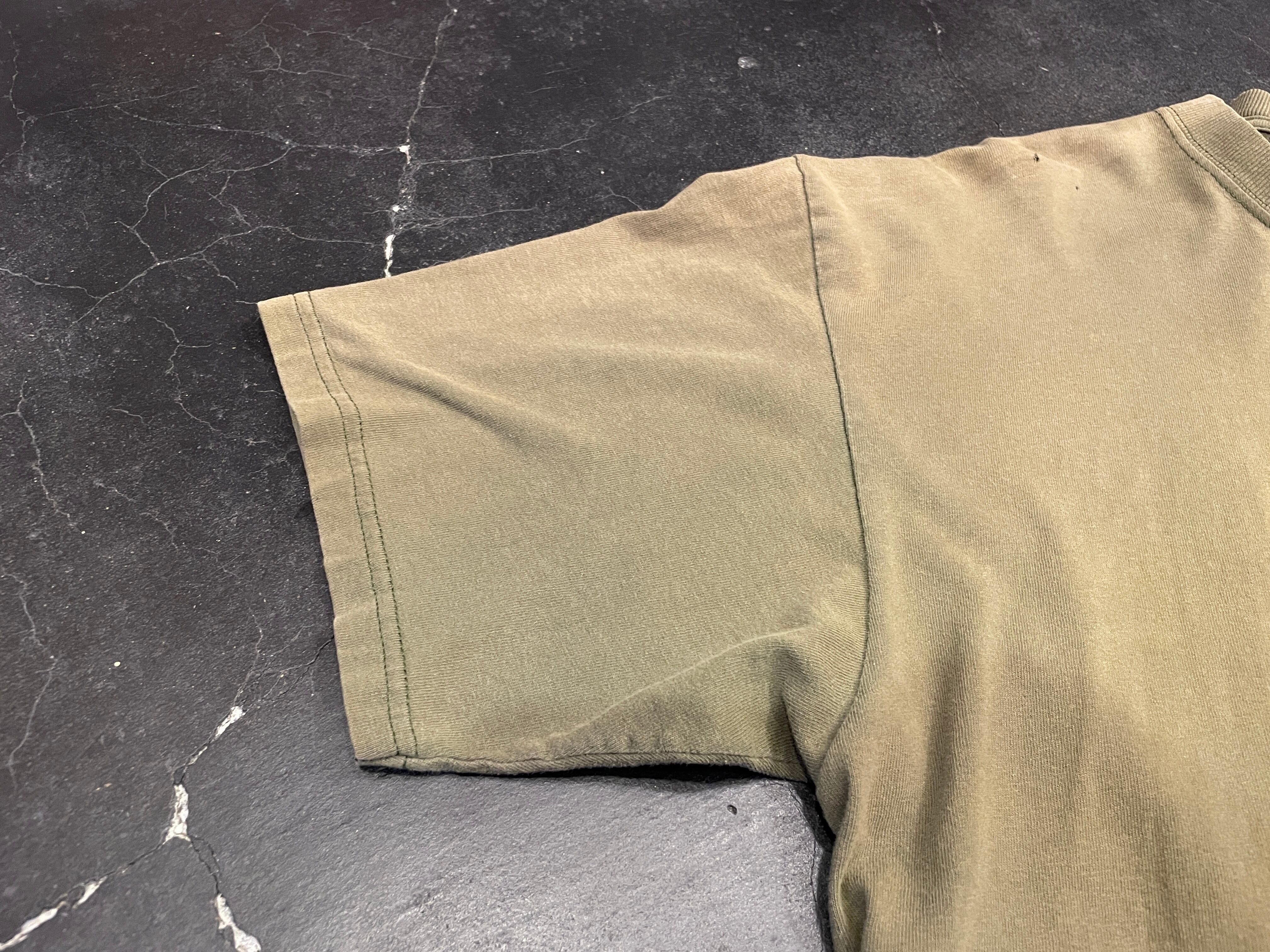フェードした雰囲気のあるカーキボディにプリントが施されたアイテム。
