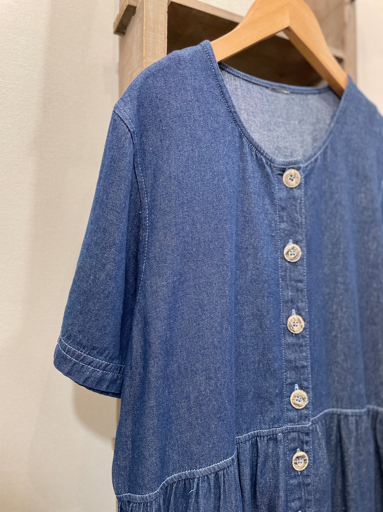濃いめのデニムに、ステッチは水色でフロントのシックなボタンもgood◎◎◎
