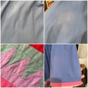こちらはくすみブルーのボディに映えるパステルのパッチワークが本当に最高、、、