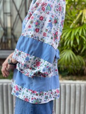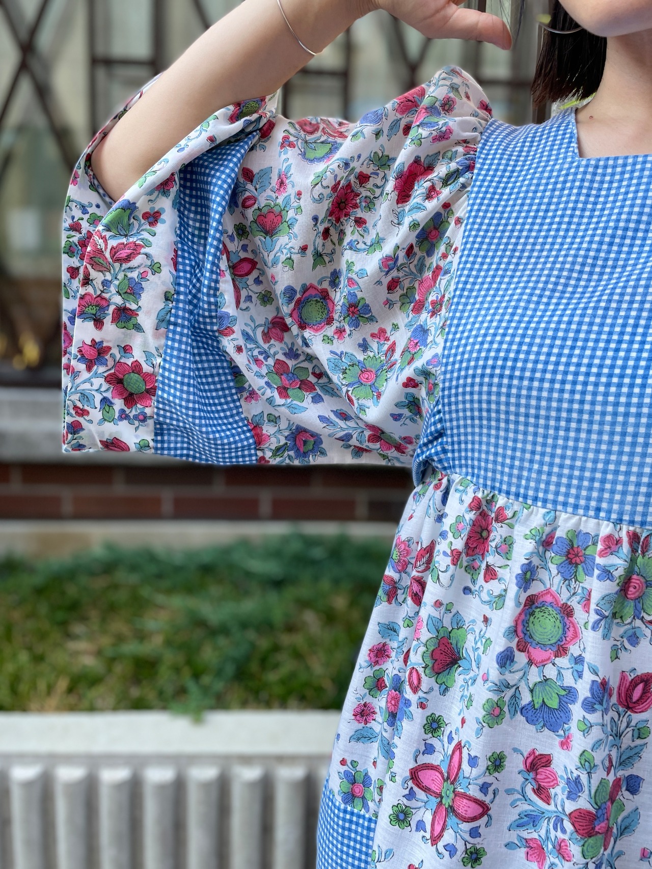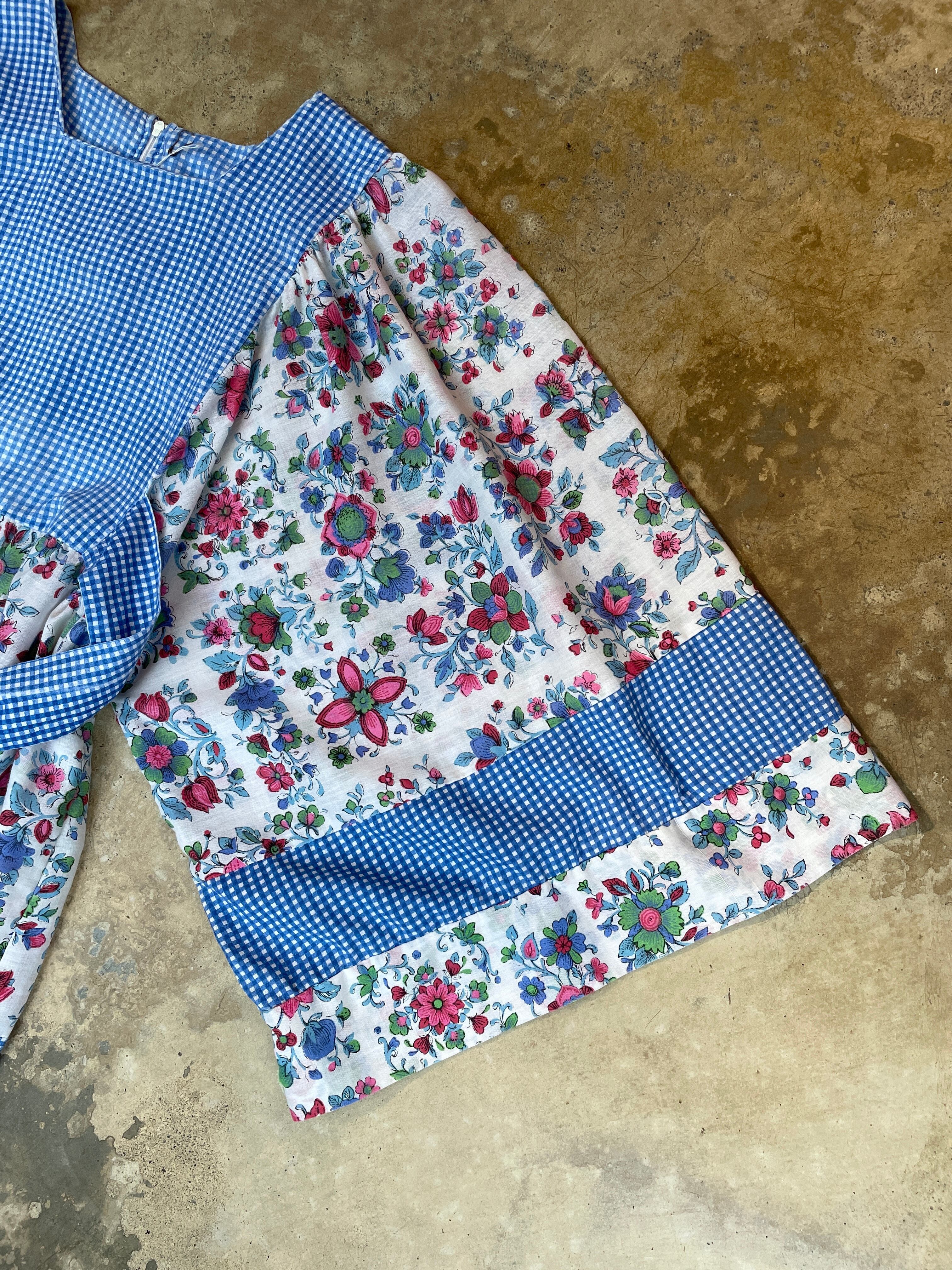 可愛らしい花柄とギンガムチェックが良い70sチュニック。