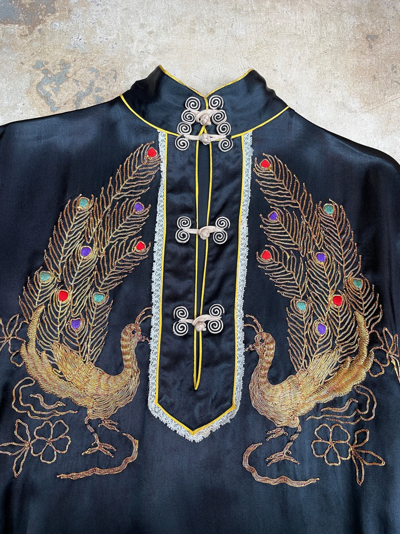 こちらは手の込んだ手刺繍にて表現された孔雀の迫力が素晴らしいアイテム。