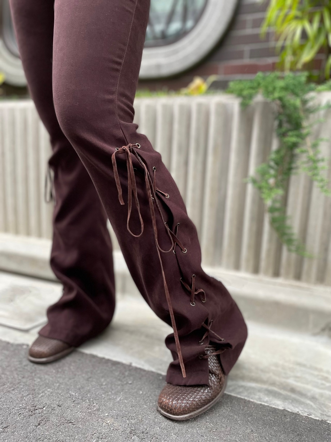 落ち着いたブラウンボディに、フロントと膝下のレースアップが可愛らしく、シンプルながらもデザイン性がありgood◎◎◎