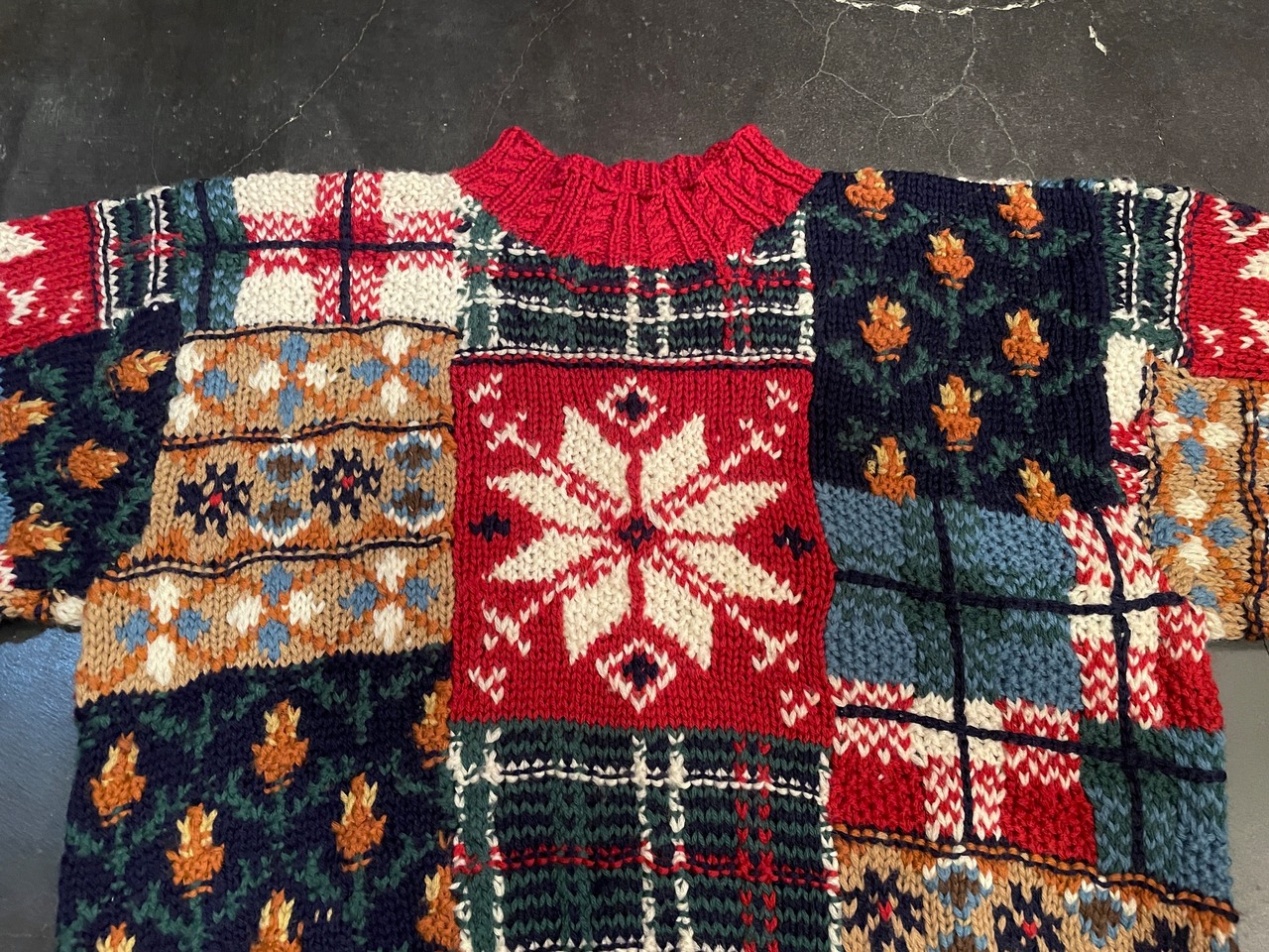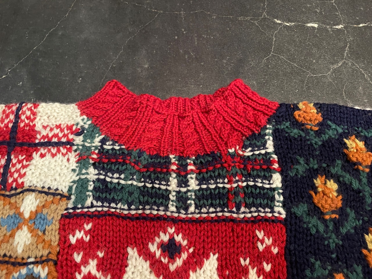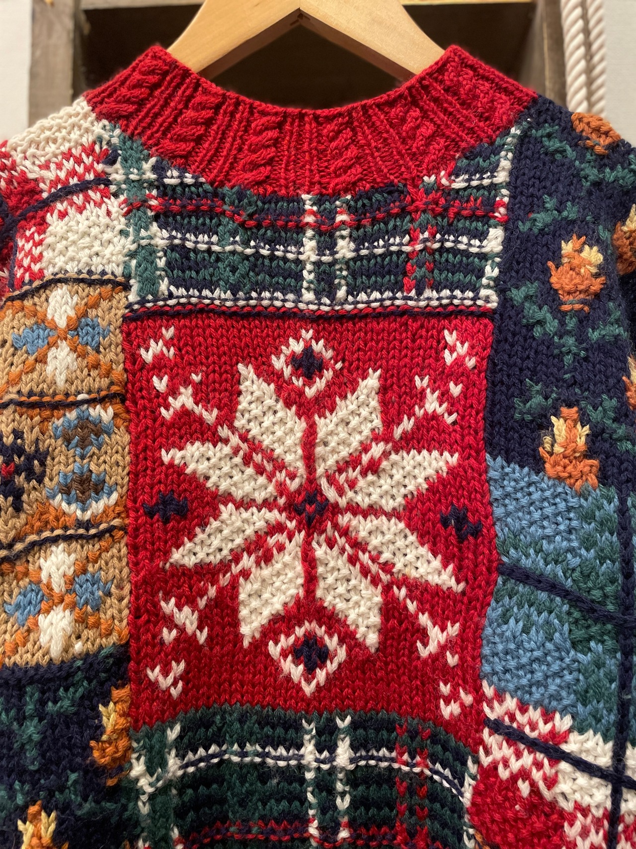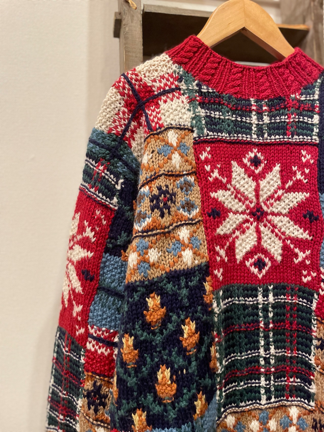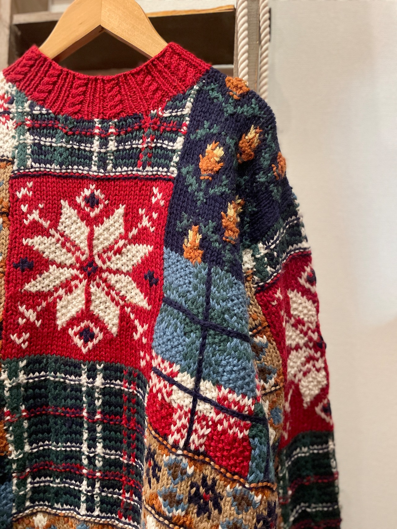 雪結晶やチェックや花柄のモチーフがパッチワークのように360度に施されたハイクオリティなアイテム。