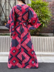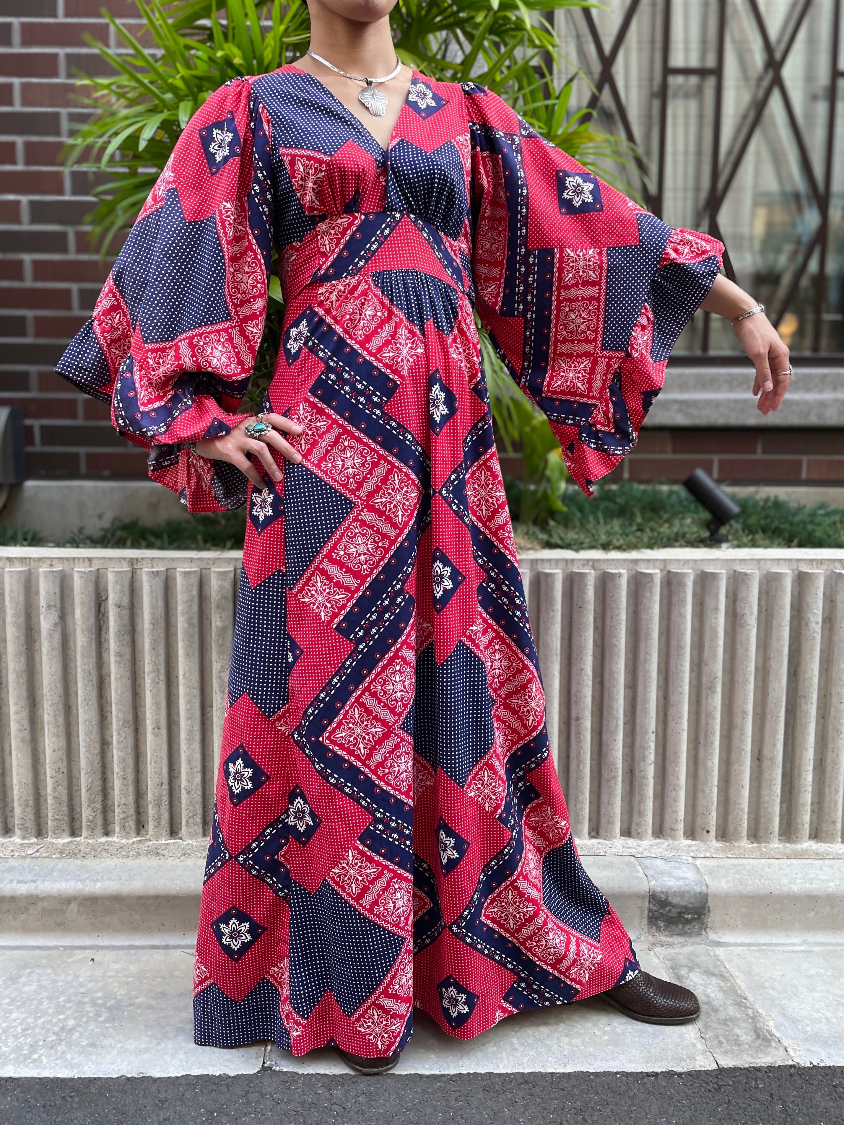 この時代らしいマキシ丈、フレアスリーブで間違いなし。