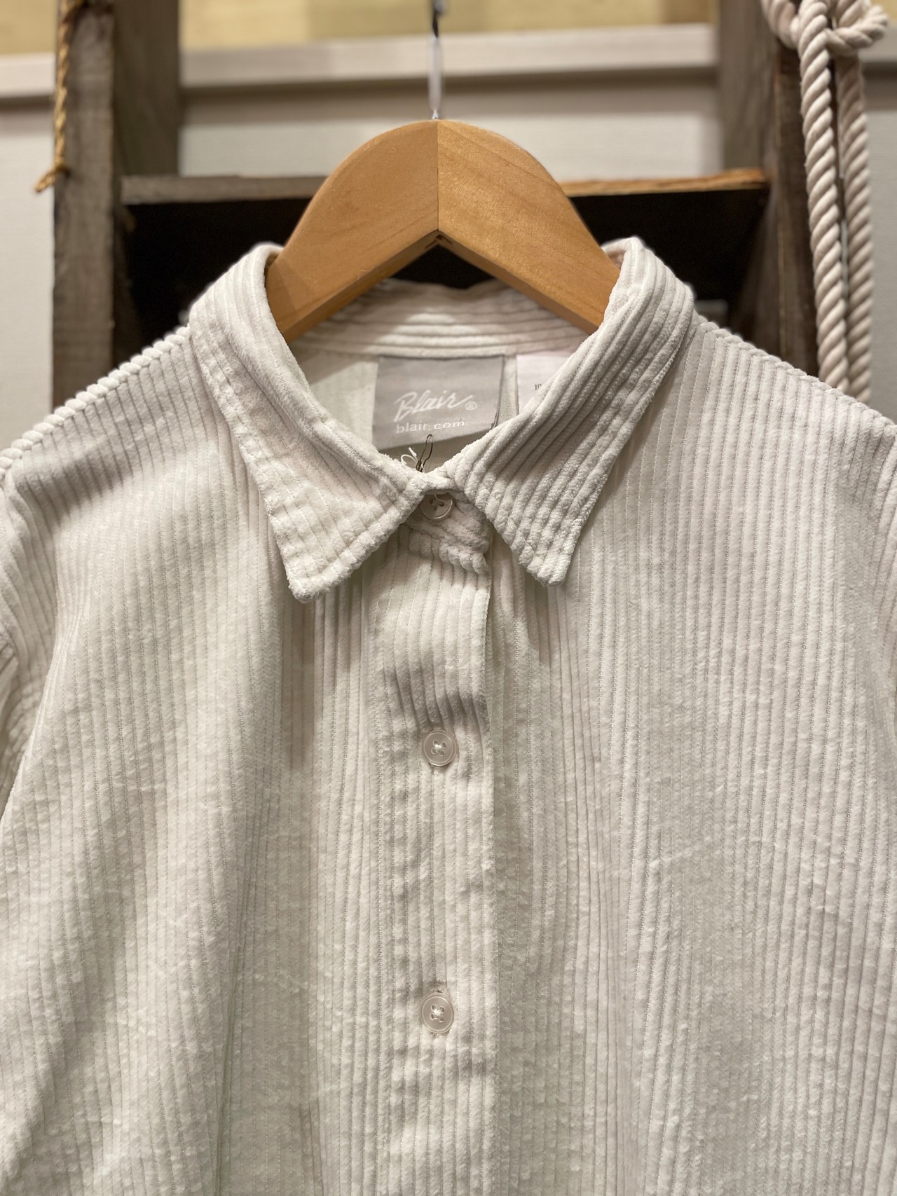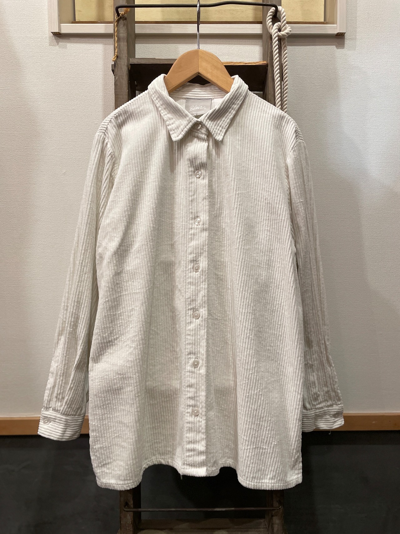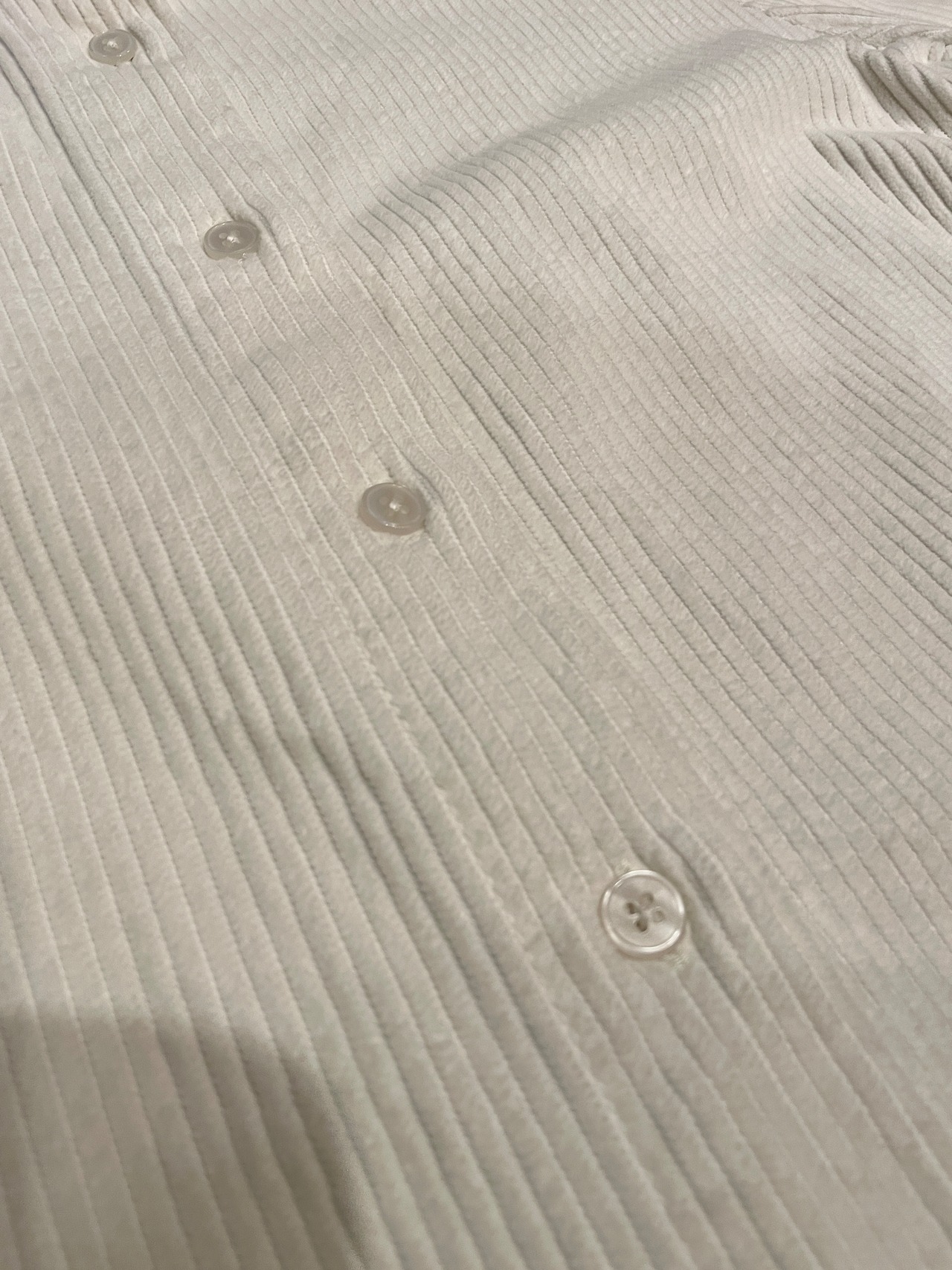 シンプルなホワイトプレーンのコーデュロイシャツ。