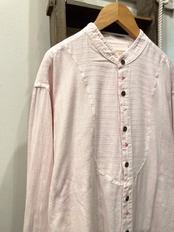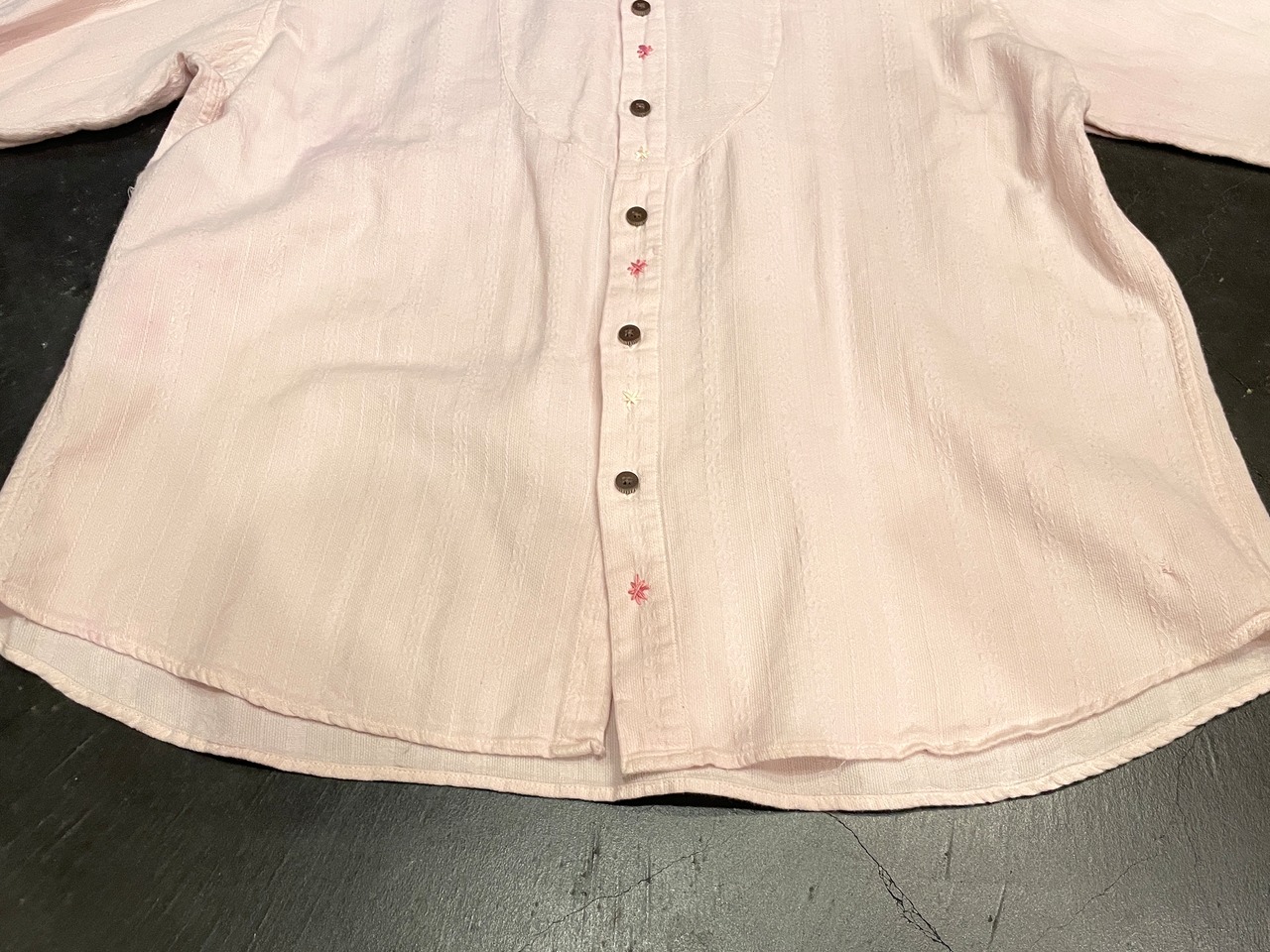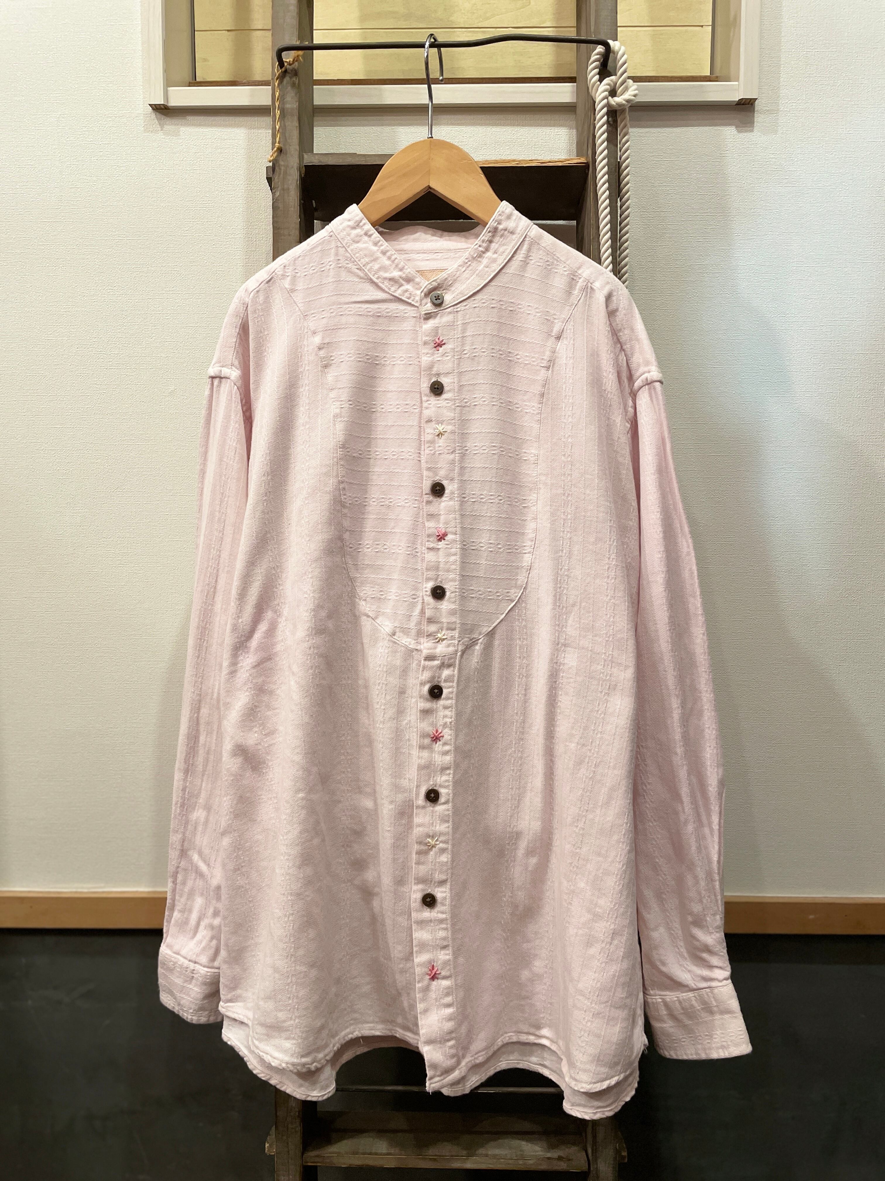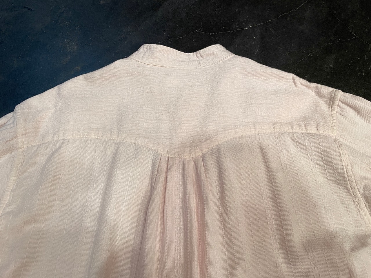 優しい薄らピンクのボディに、織りで表現されたネイティブ調なデザインやヨーク切り替えが素敵なアイテム。