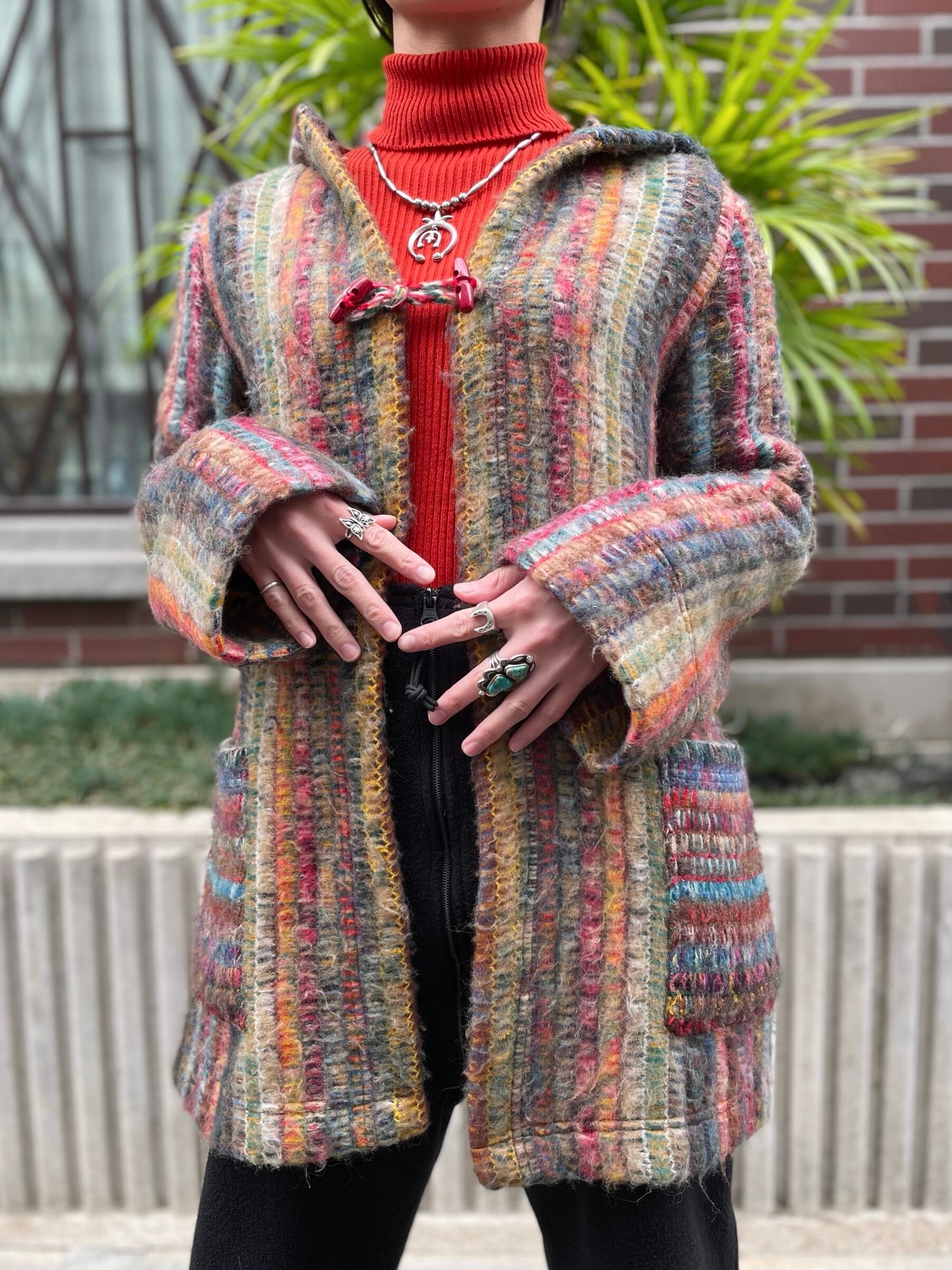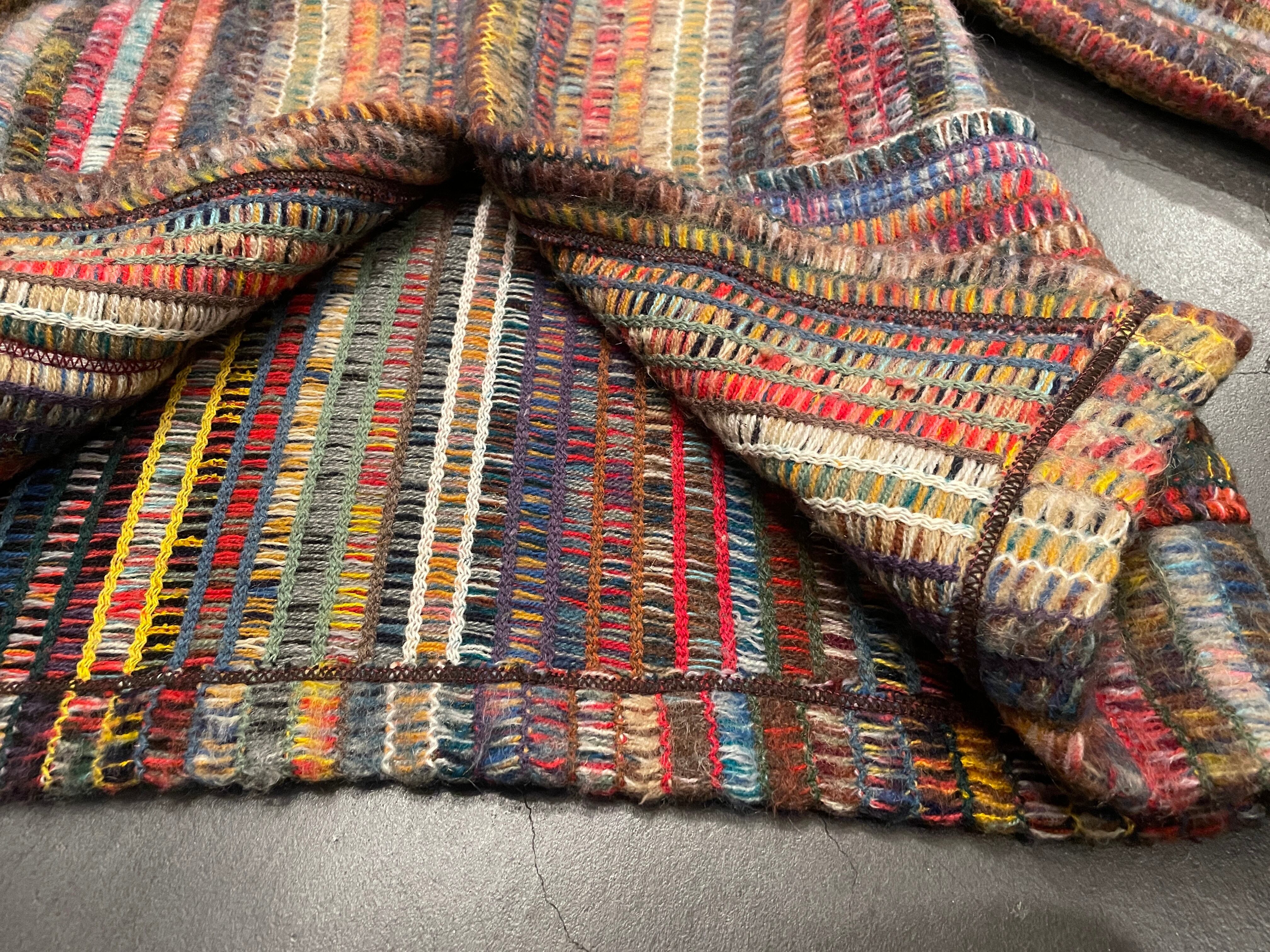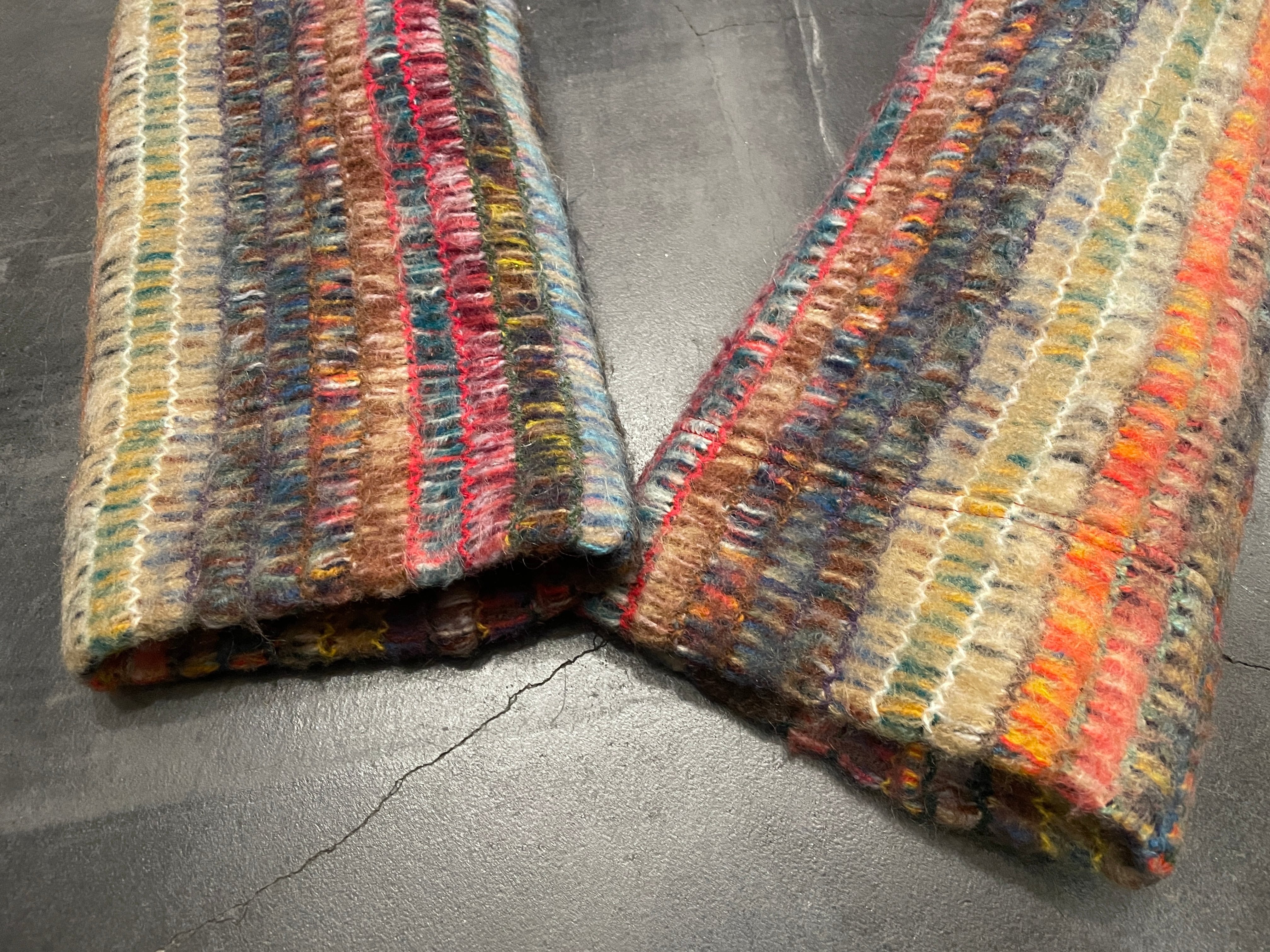 こちらは沢山の毛糸を織り交ぜて表現されたカラフルなデザインが可愛らしいアイテム。
