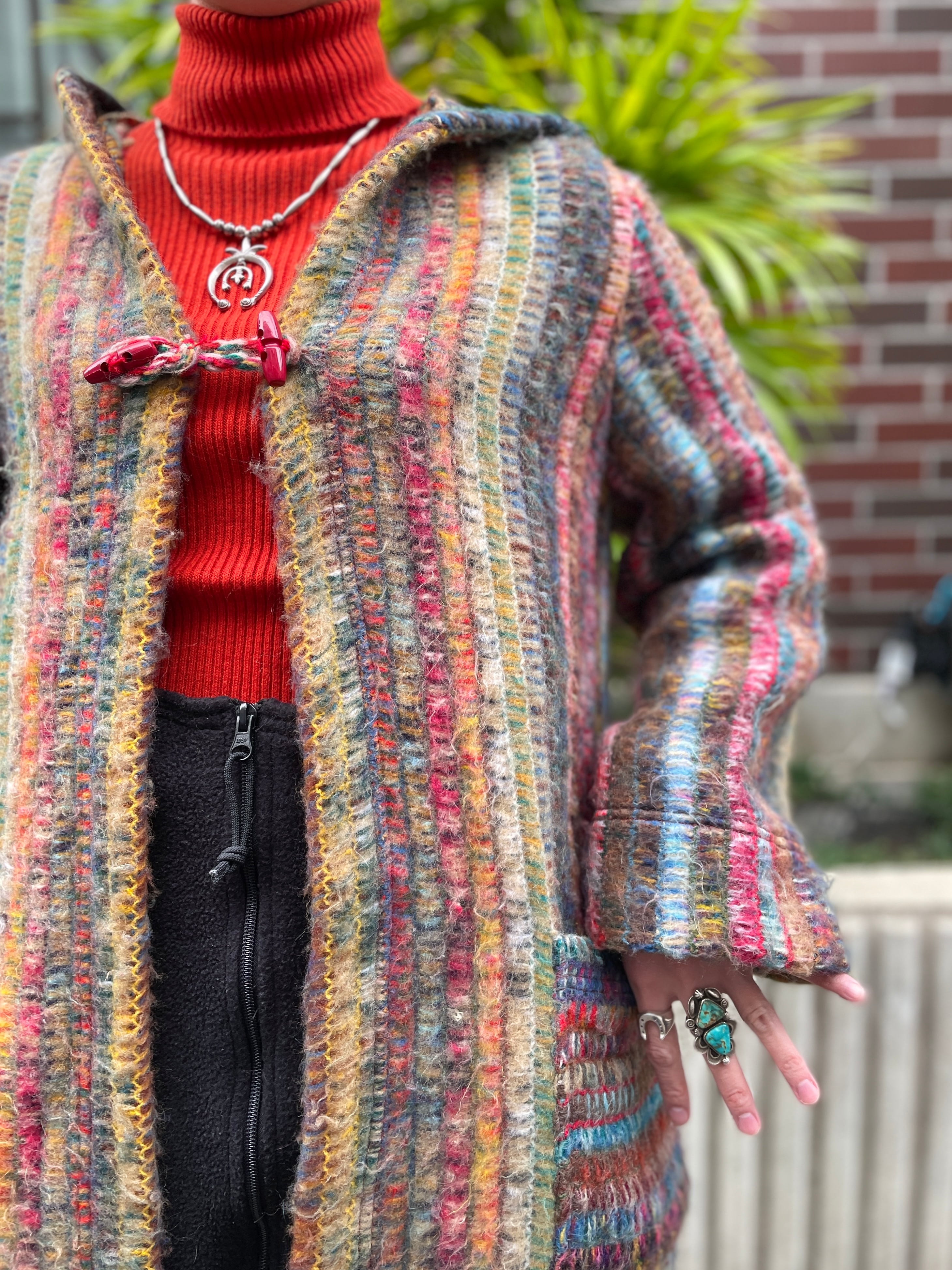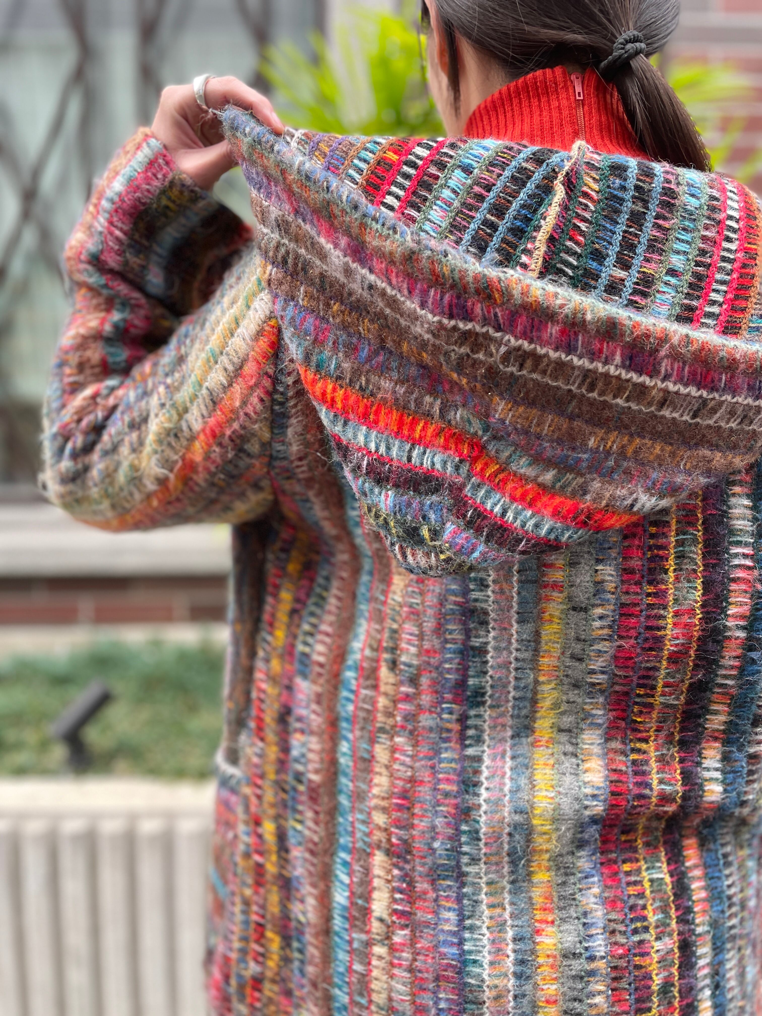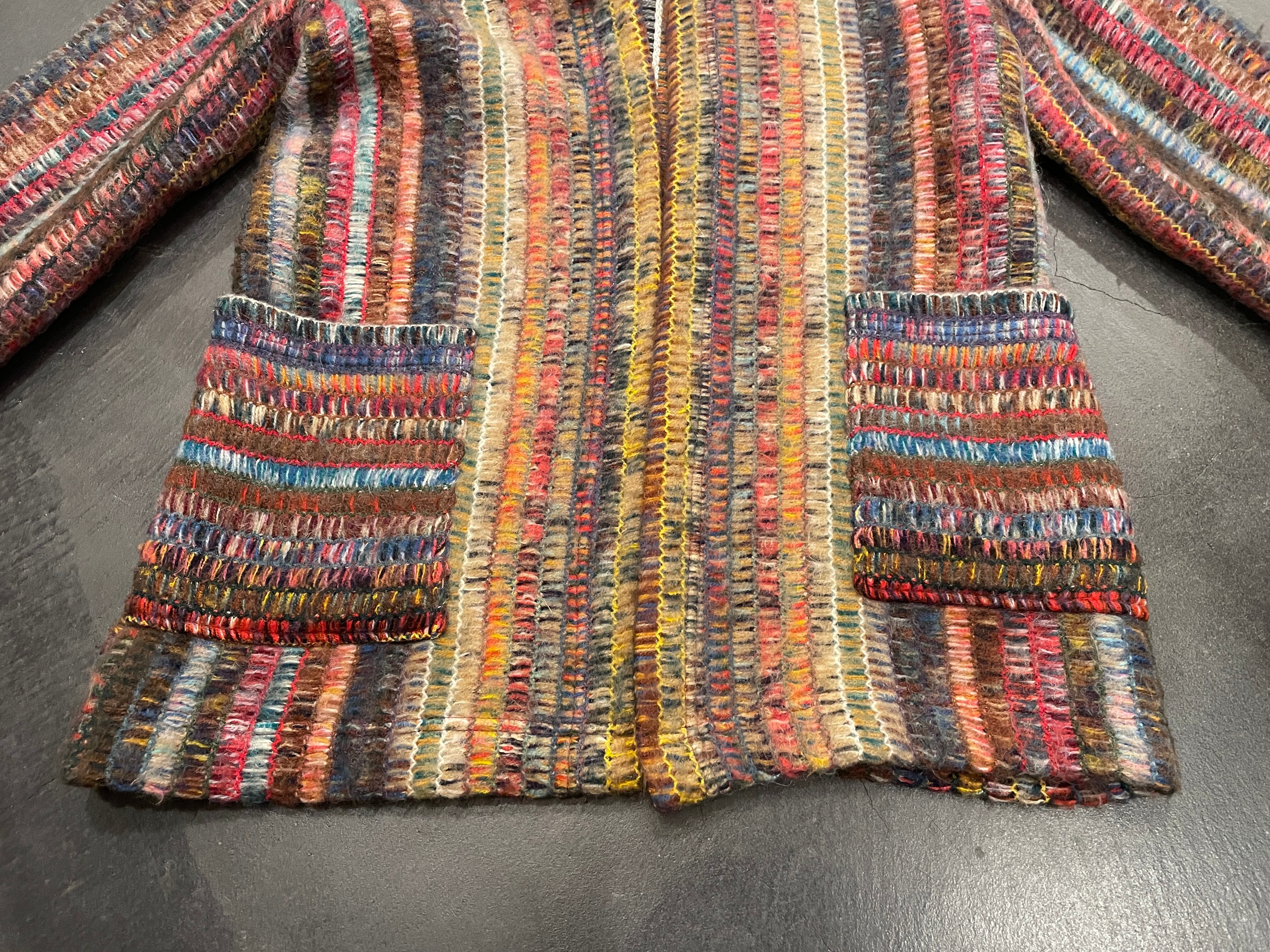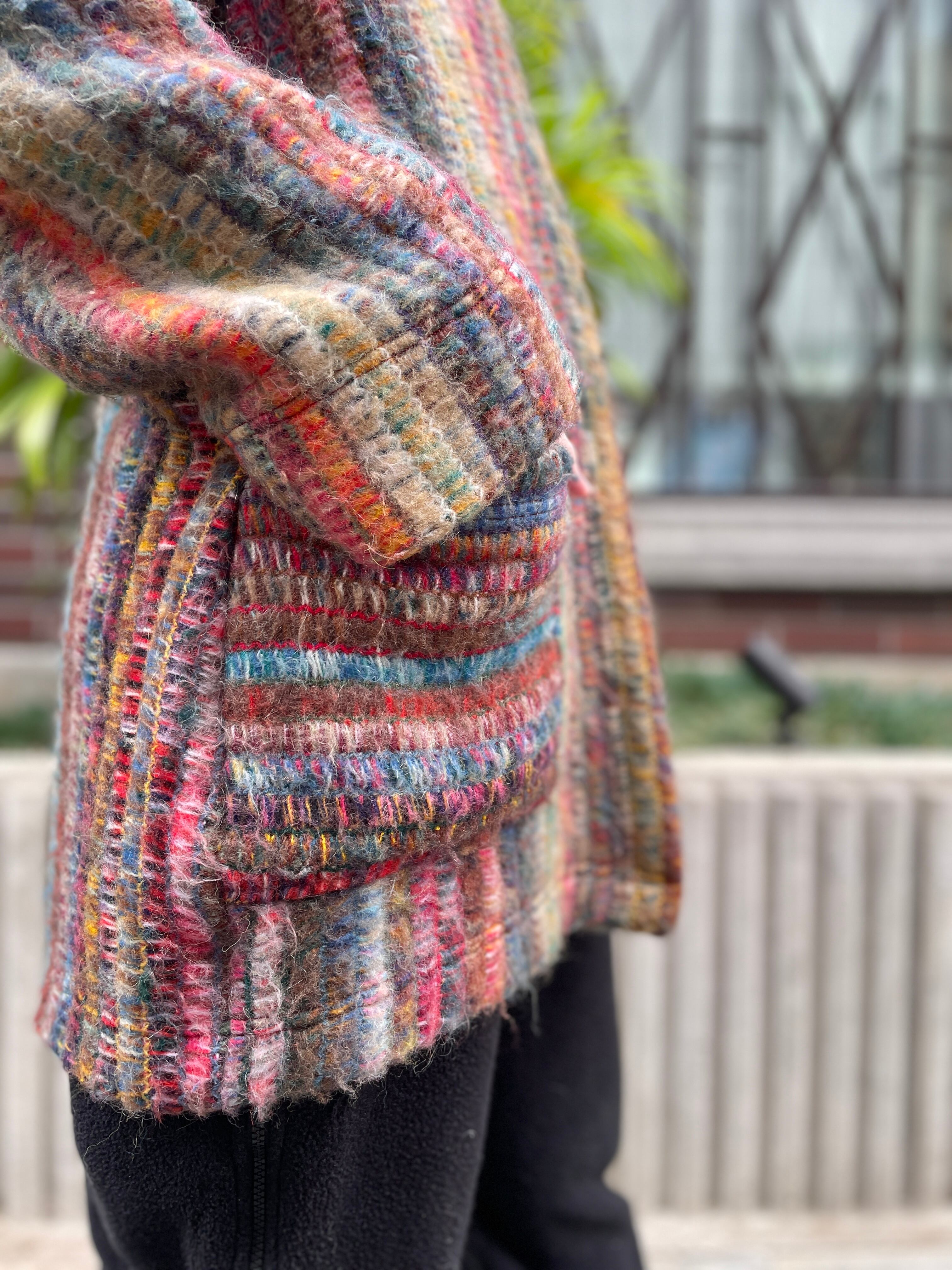 こちらは沢山の毛糸を織り交ぜて表現されたカラフルなデザインが可愛らしいアイテム。
