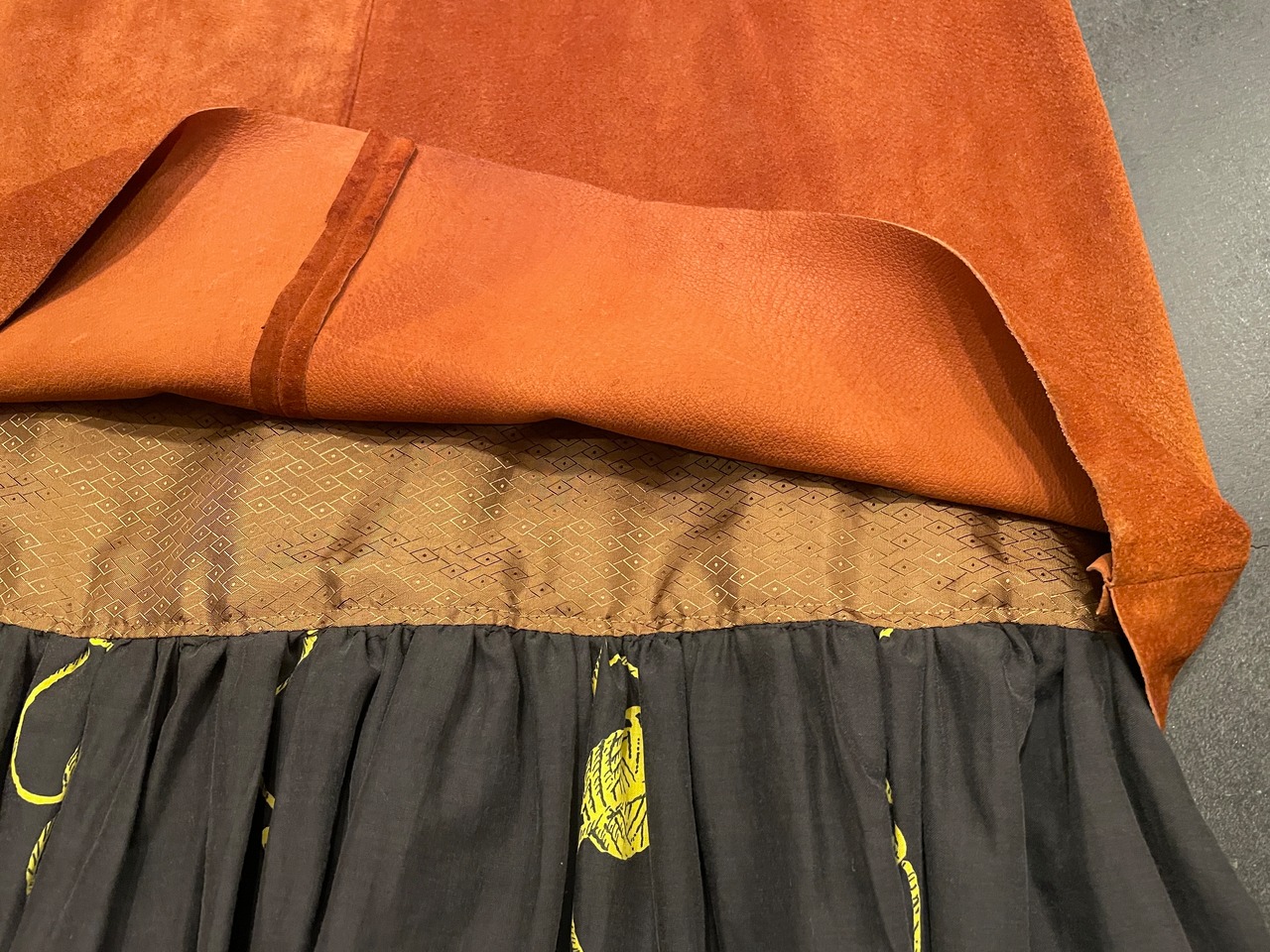 こちらは柔らかいスウェードレザーの裾に、50年代頃の可愛らしいファブリックが後付けされた、遊び心たっぷりでビンテージならではなアイテム◎